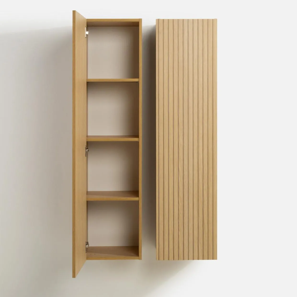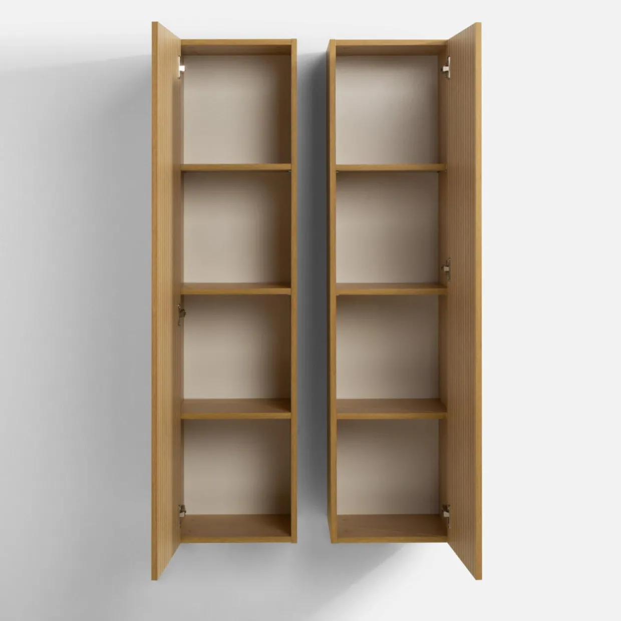 Dzięki szafkom ściennym SIGMA wykorzystasz pionową przestrzeń na przechowanie swoich niezbędnych rzeczy – w ten sposób oszczędzisz cenny metraż. Pełne drzwi ozdobione ryflowaniem ochronią zawartość przed kurzem i spojrzeniami gości.