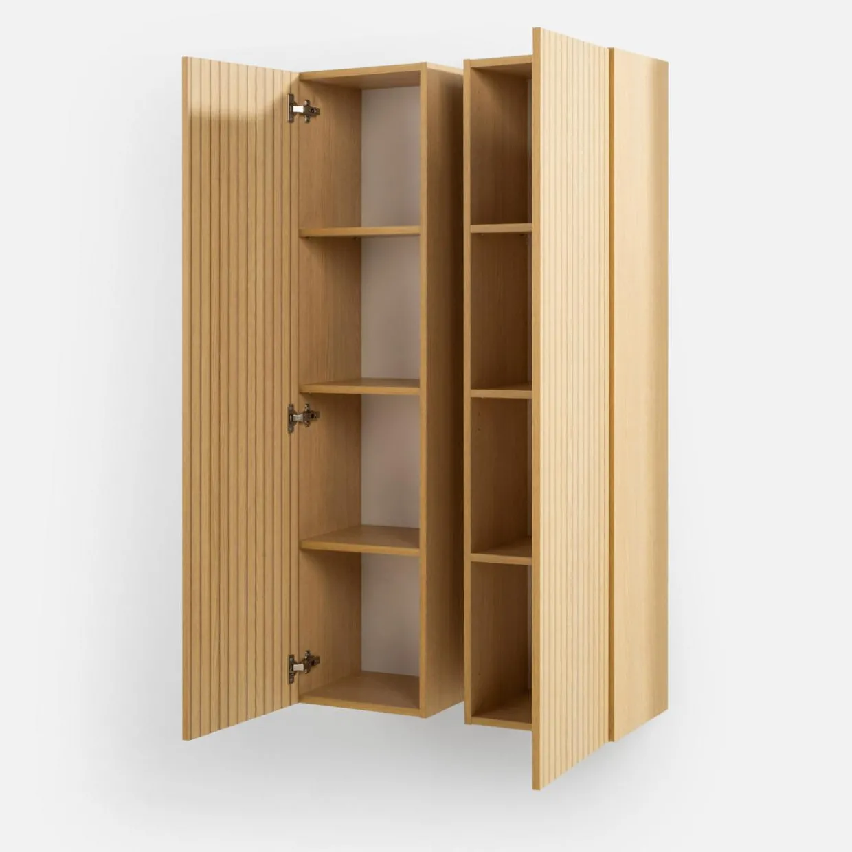 - Komplet 2 szafek ściennych oferuje łącznie 8 wnęk na książki czy dokumenty.