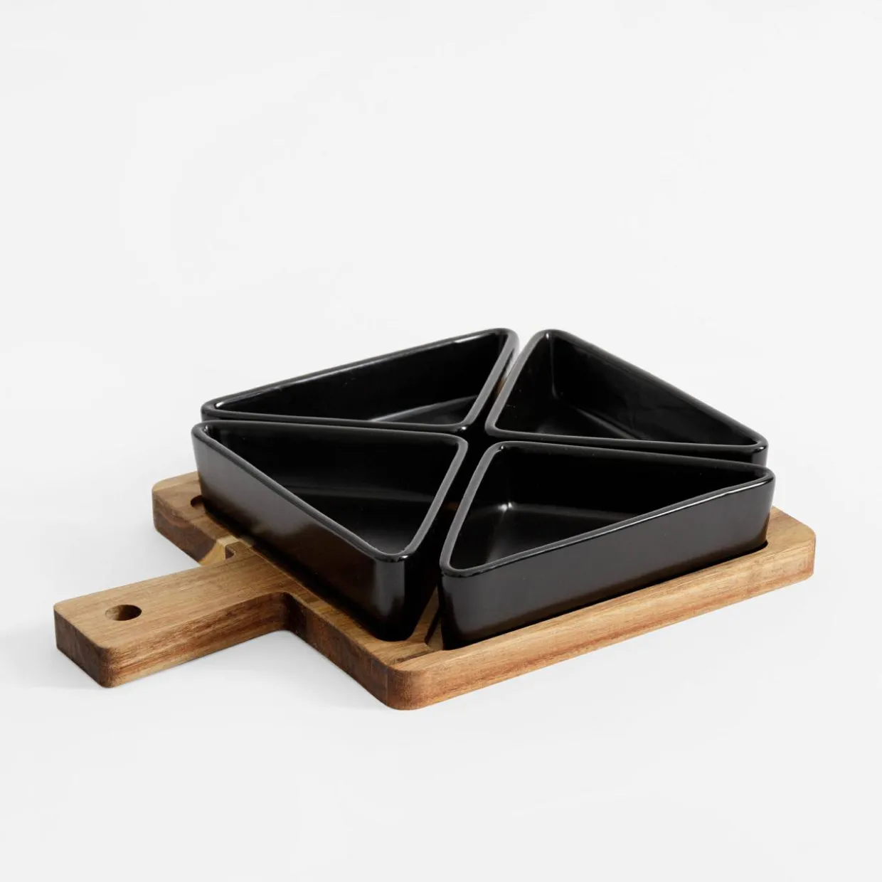 Komplet 4 miseczek na akacjowej tacy