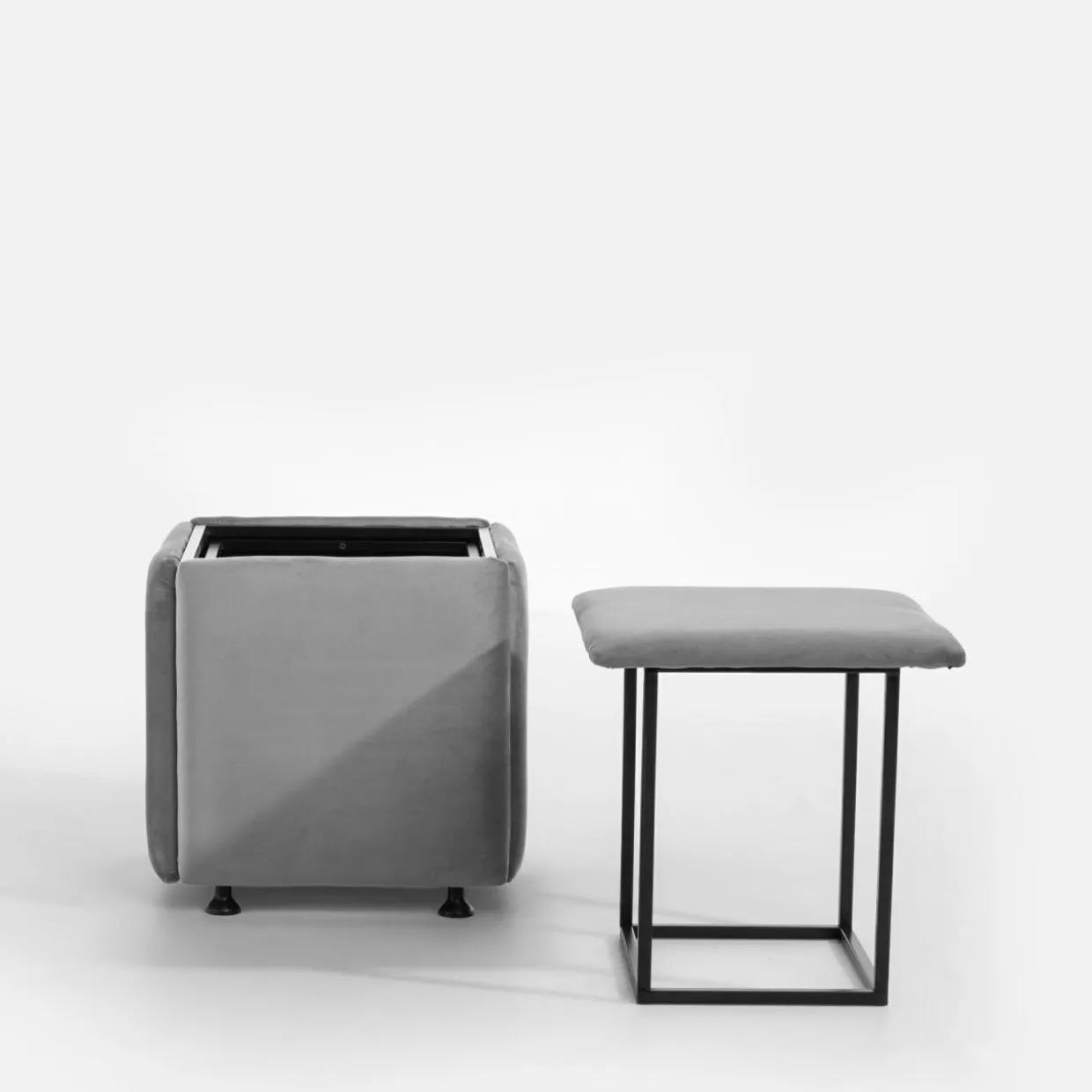 - Złożone pufy mają wymiary zaledwie 48x48x49 cm, natomiast pojedynczy puf: 41x41x43 cm.