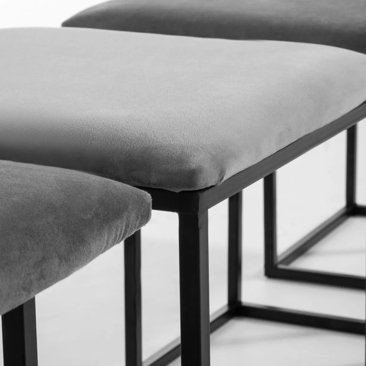 Szary welur i metalowa konstrukcja malowana na kolor czarny podkreślą nowoczesny charakter wnętrza.