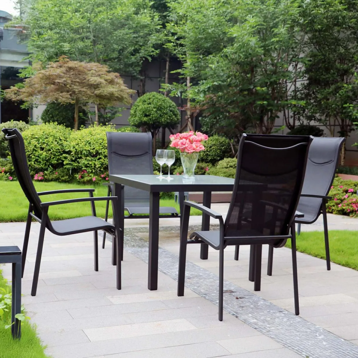 - Ciemna kolorystyka mebli będzie pasować do wielu pomysłów aranżacyjnych ogródka i balkonu. Śmiało połóż kolorowe poduszki i zdobione szklanki!