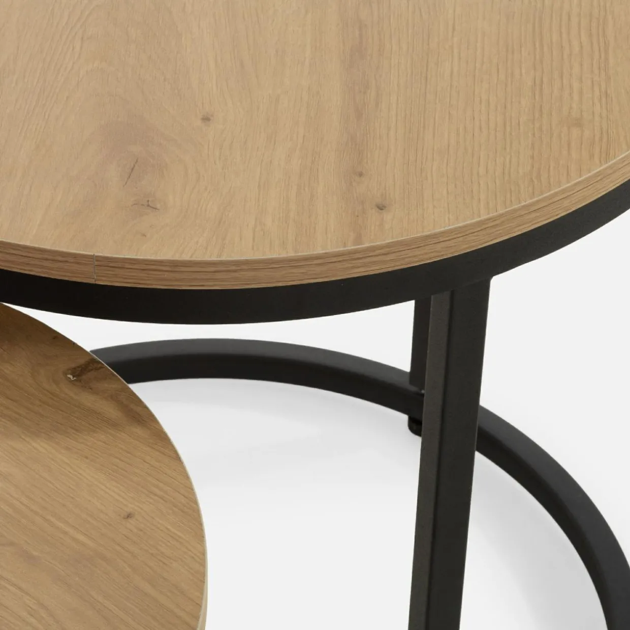 - Uniwersalność użytkowania – stoliki można używać razem lub osobno w dowolnym układzie, dostosowując je do swoich potrzeb, np. jako miejsce do pracy z laptopem lub spożycia szybkiego lunchu.