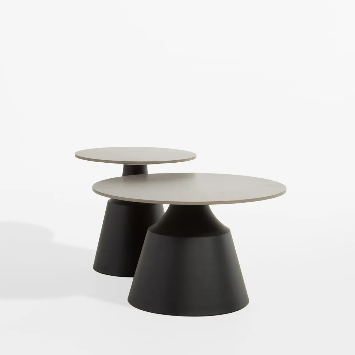 Komplet 2 okrągłych stolików OPUSO w ciemnoszarym kolorze to doskonały wybór dla fanów nowoczesnych wnętrz. Idealnie pasuje do nowoczesnego salonu, w którym królują obłe kształty.
