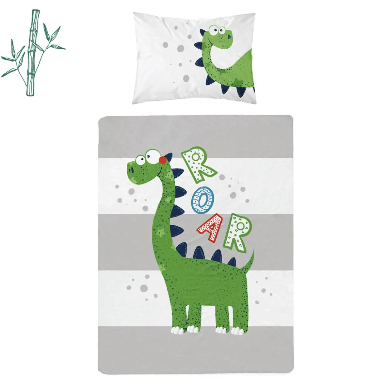 - Mały użytkownik lub użytkowniczka pościeli doceni z pewnością motyw uroczego dinozaura, który zachęca do położenia się do łóżka, by śnić o wesołych przygodach w prehistorycznym świecie.