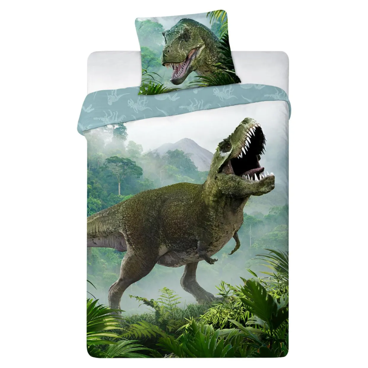Dinozaur wygląda groźnie, ale pościel jest uszyta z przyjemnego i miłego w dotyku perkalu. To 100% wysokiej jakości bawełna charakteryzująca się splotem płóciennym, który daje wspaniały efekt matowej, świeżej i gładkiej powierzchni.