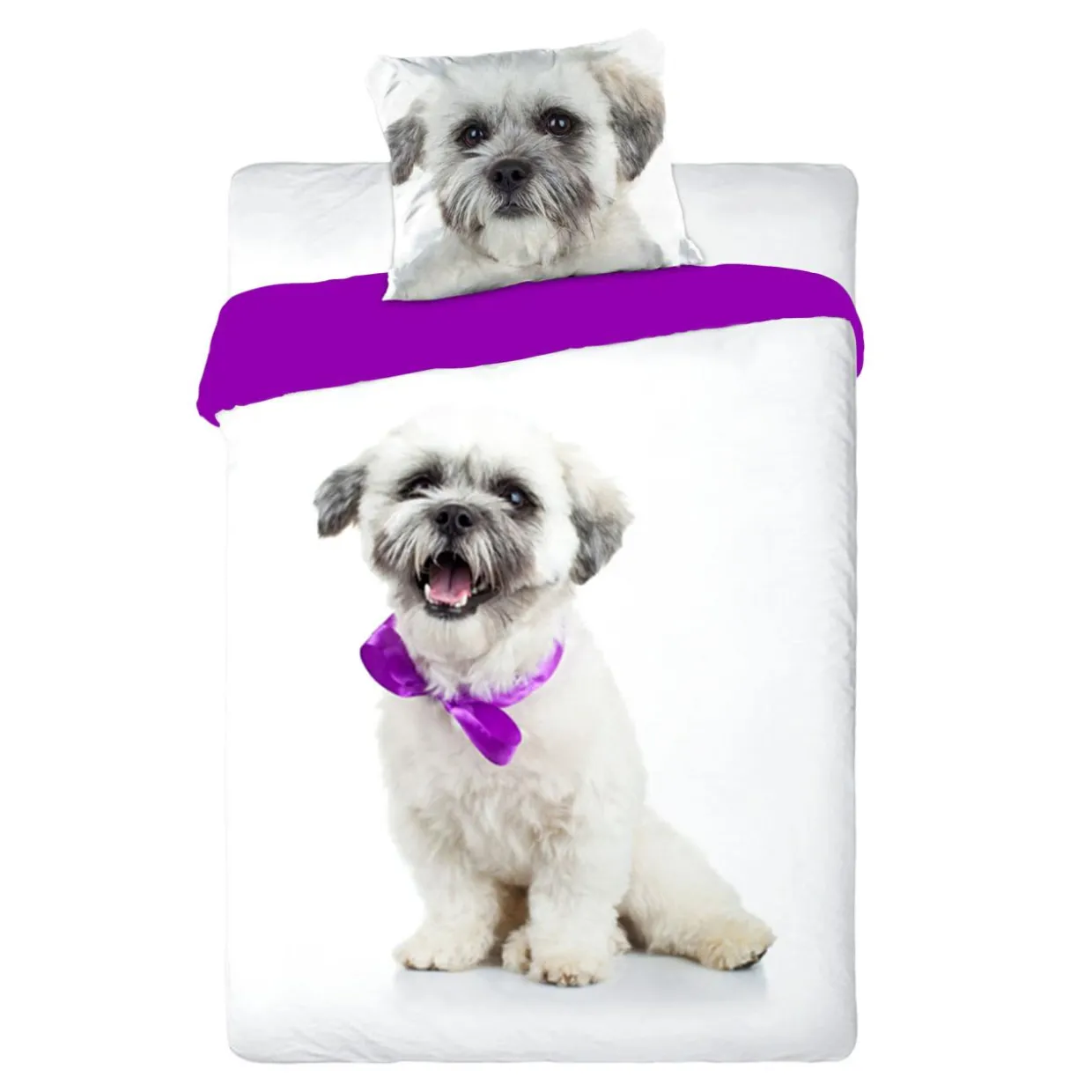 Pościel młodzieżowa PIES została wykonana z najwyższej jakości bawełny, co zapewnia komfort podczas użytkowania oraz trwałość produktu. Realistyczny, uroczy nadruk wprowadzi do pokoju miłośniczki małych piesków radosny klimat.