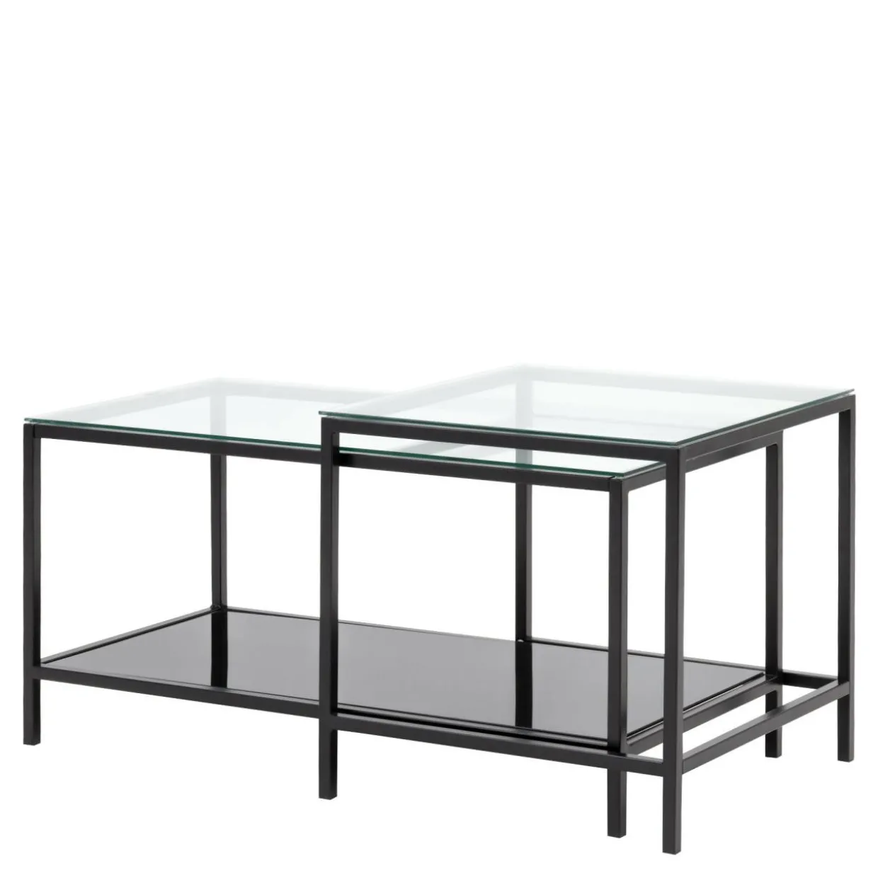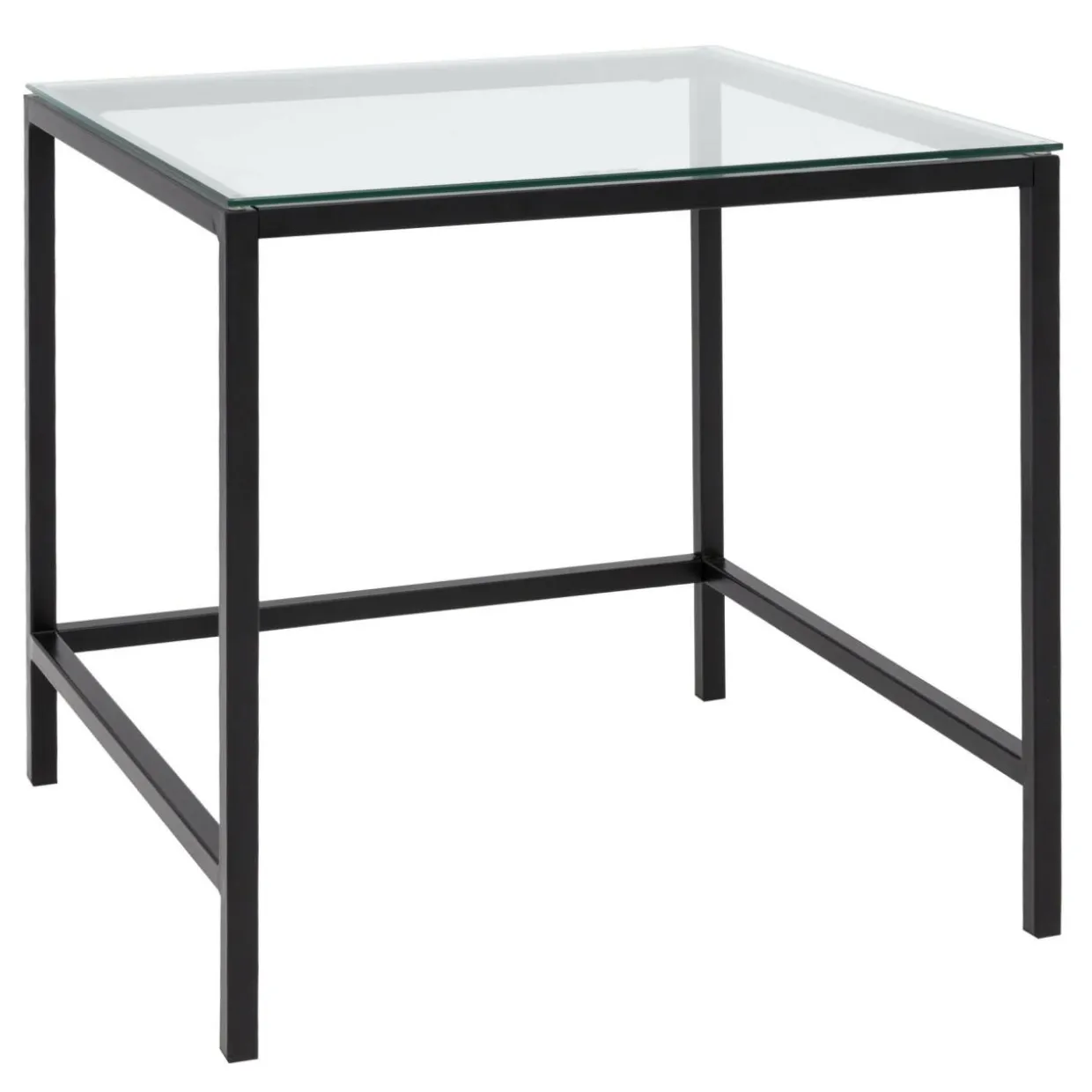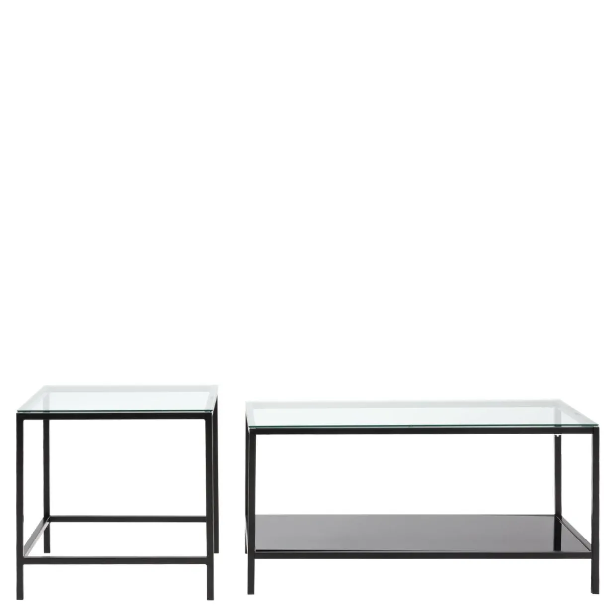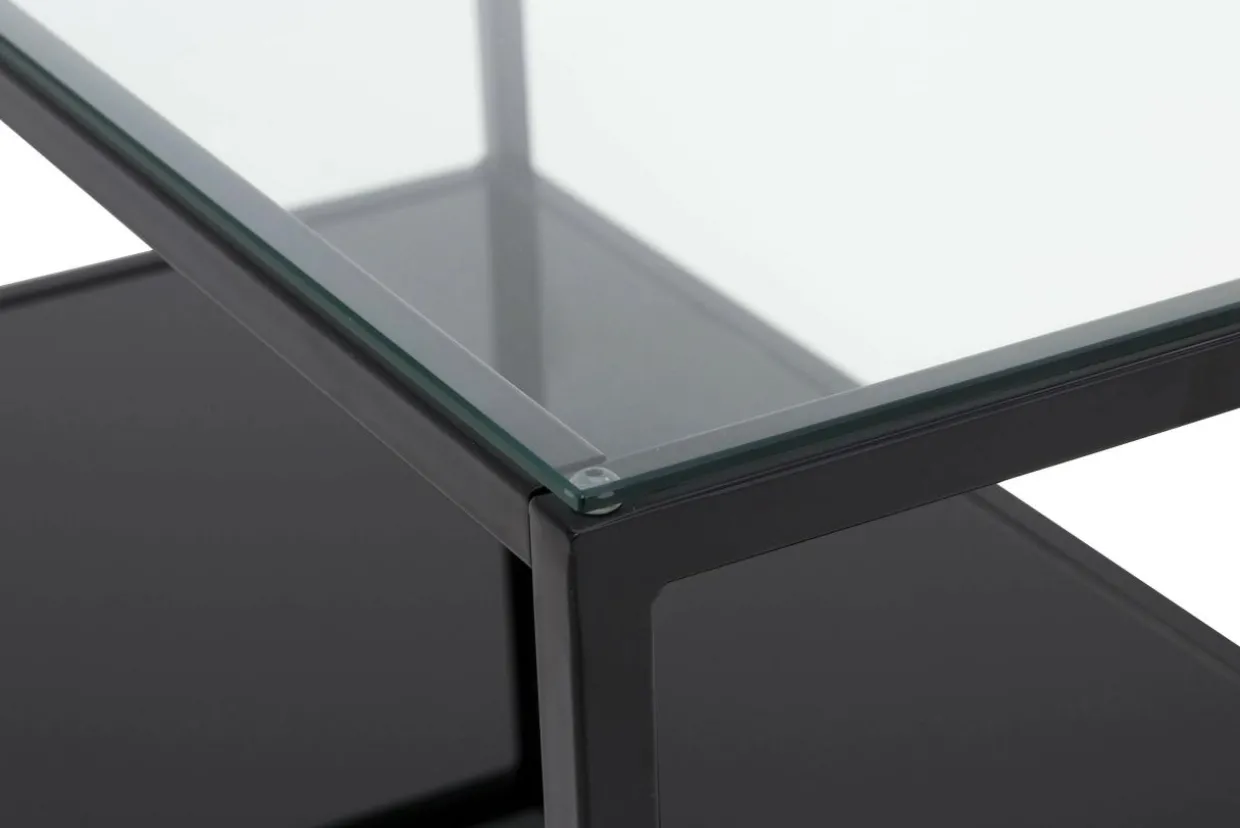 Stoliki wykonano z metalu, który został pomalowany metodą proszkową. Szklane blaty podkreślają industrialny charakter mebla