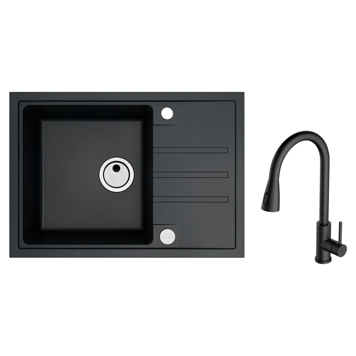 - Wykończony w czarnym kolorze posiada 1 komorę i ociekacz.