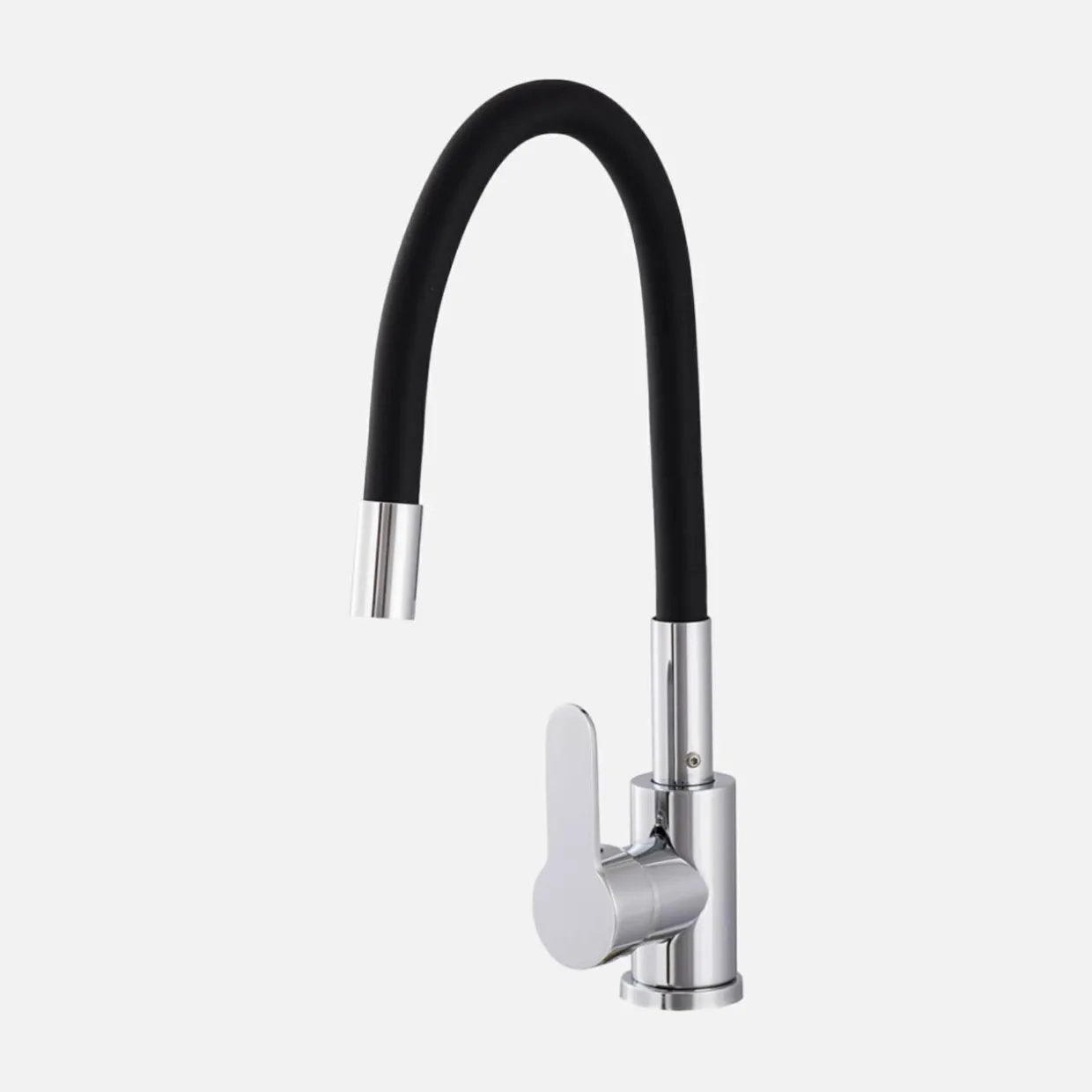 Bateria z czarnym ramieniem jest doskonałym uzupełnieniem dla nowoczesnego zlewozmywaka.