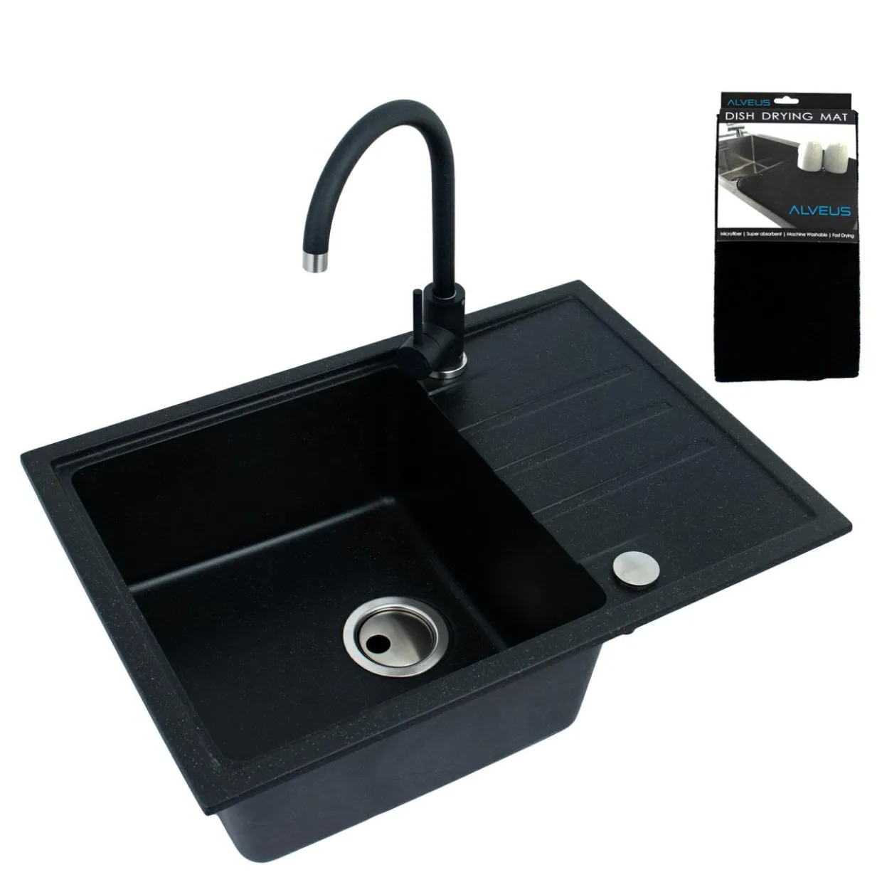 Ten zestaw wzbogacony o matę ociekową to rozwiązanie, które pozwoli Ci szybko i sprawnie wyposażyć wnętrze w urządzenia niezbędne, by zadbać o czystość naczyń i estetyczny wygląd kuchni.