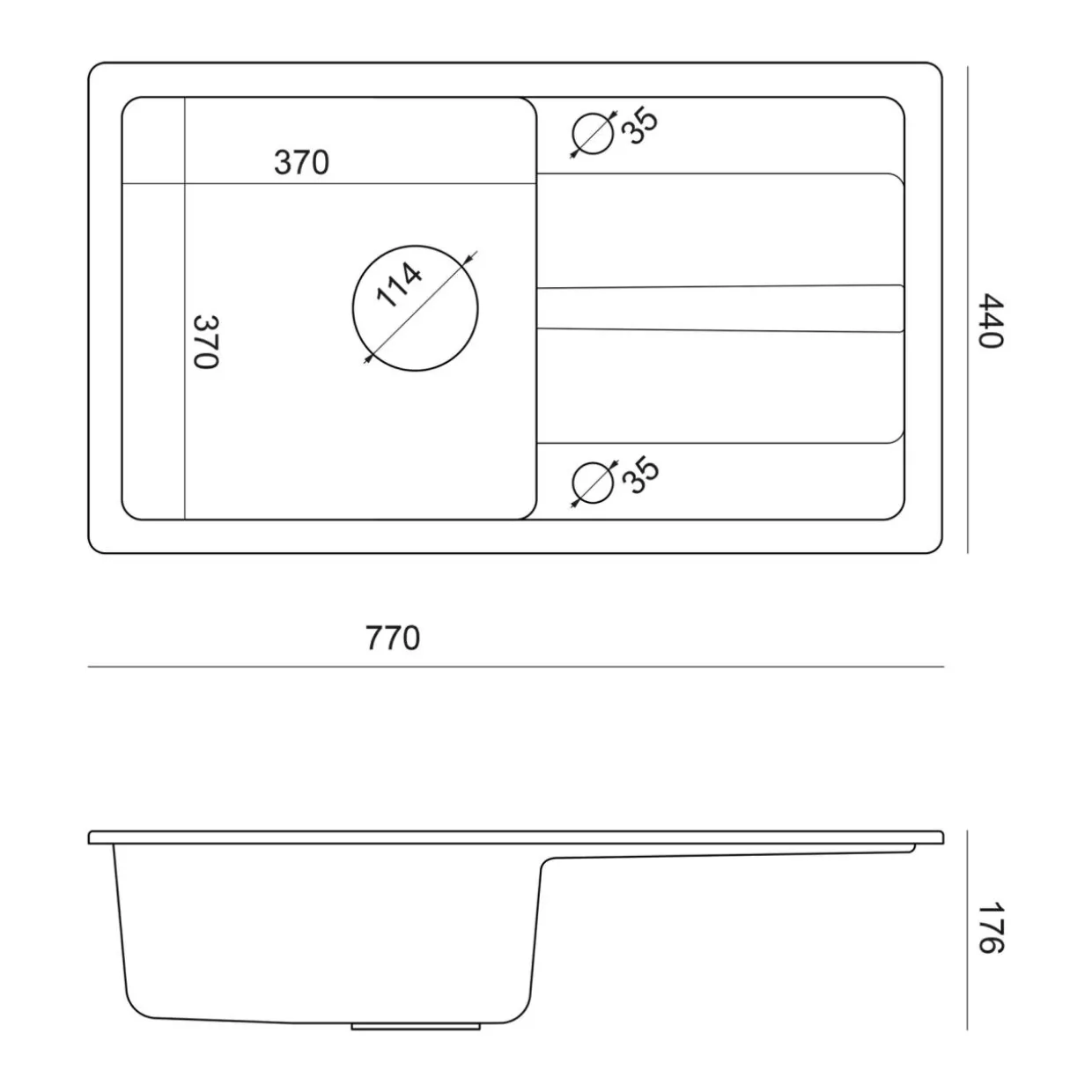 - Długość zlewozmywaka 77 cm,
