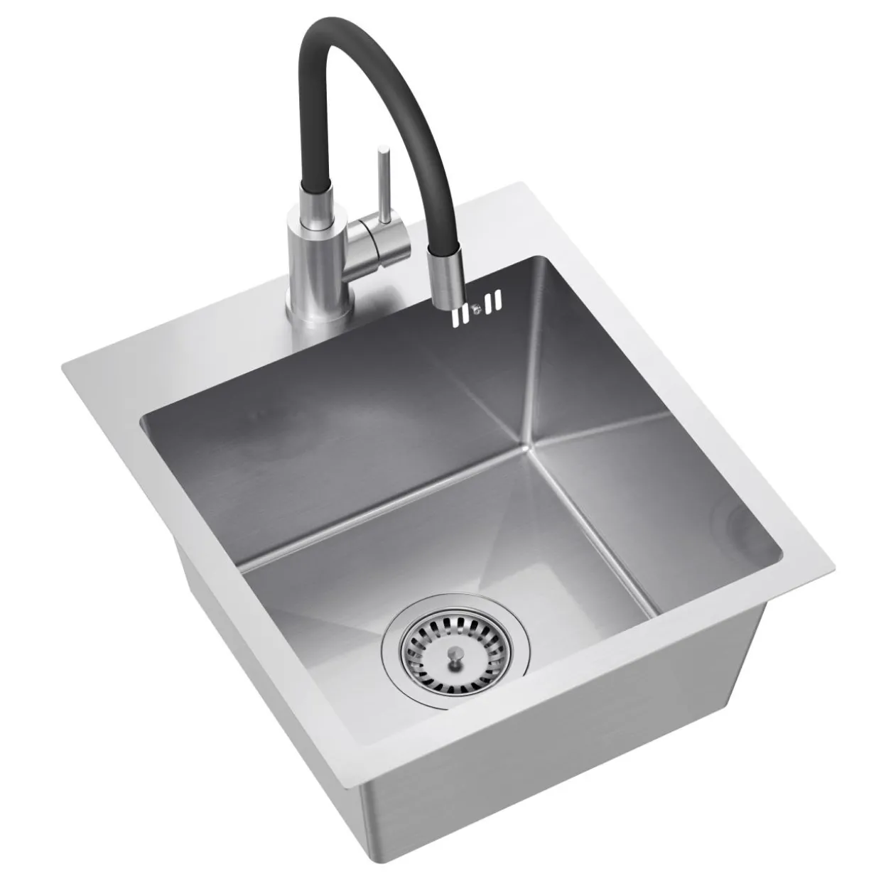 Kompaktowy, stalowy zlew, który idealnie odda charakter kuchni urządzonej w nowoczesnym stylu.
