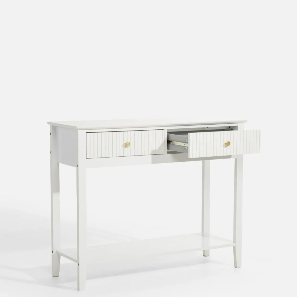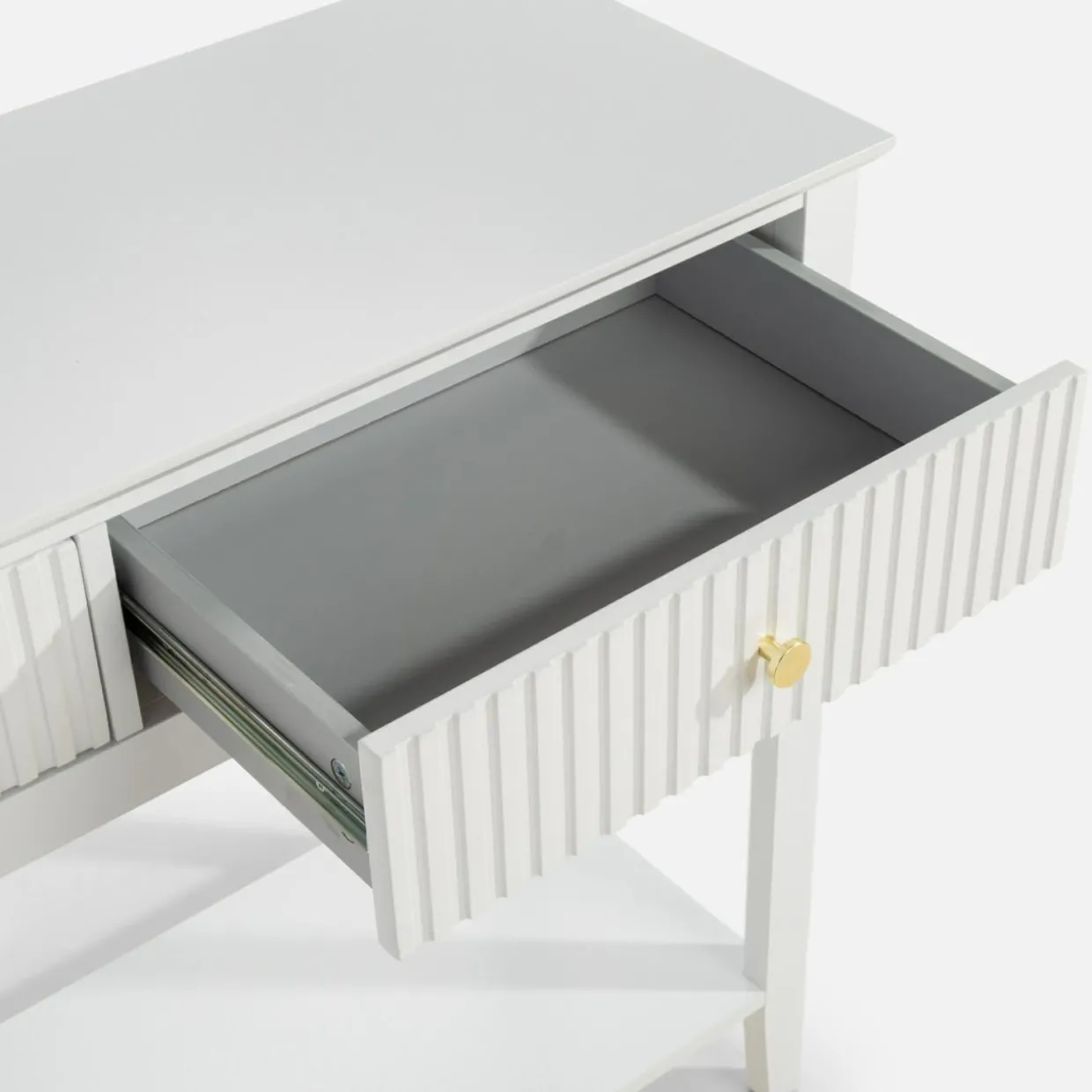 Na blacie o wymiarach 35×100 cm pomieścisz ramki na zdjęcia, kosmetyki lub ozdobną tacę na klucze.