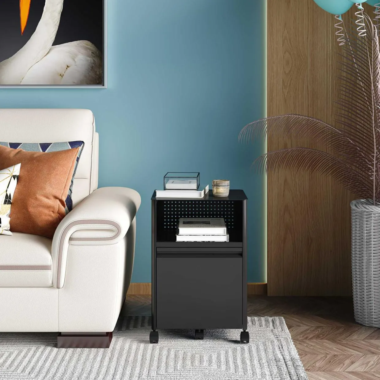 - Cenisz stabilność? Możesz zablokować 2 koła, dzięki czemu mebel pozostanie na swoim miejscu.