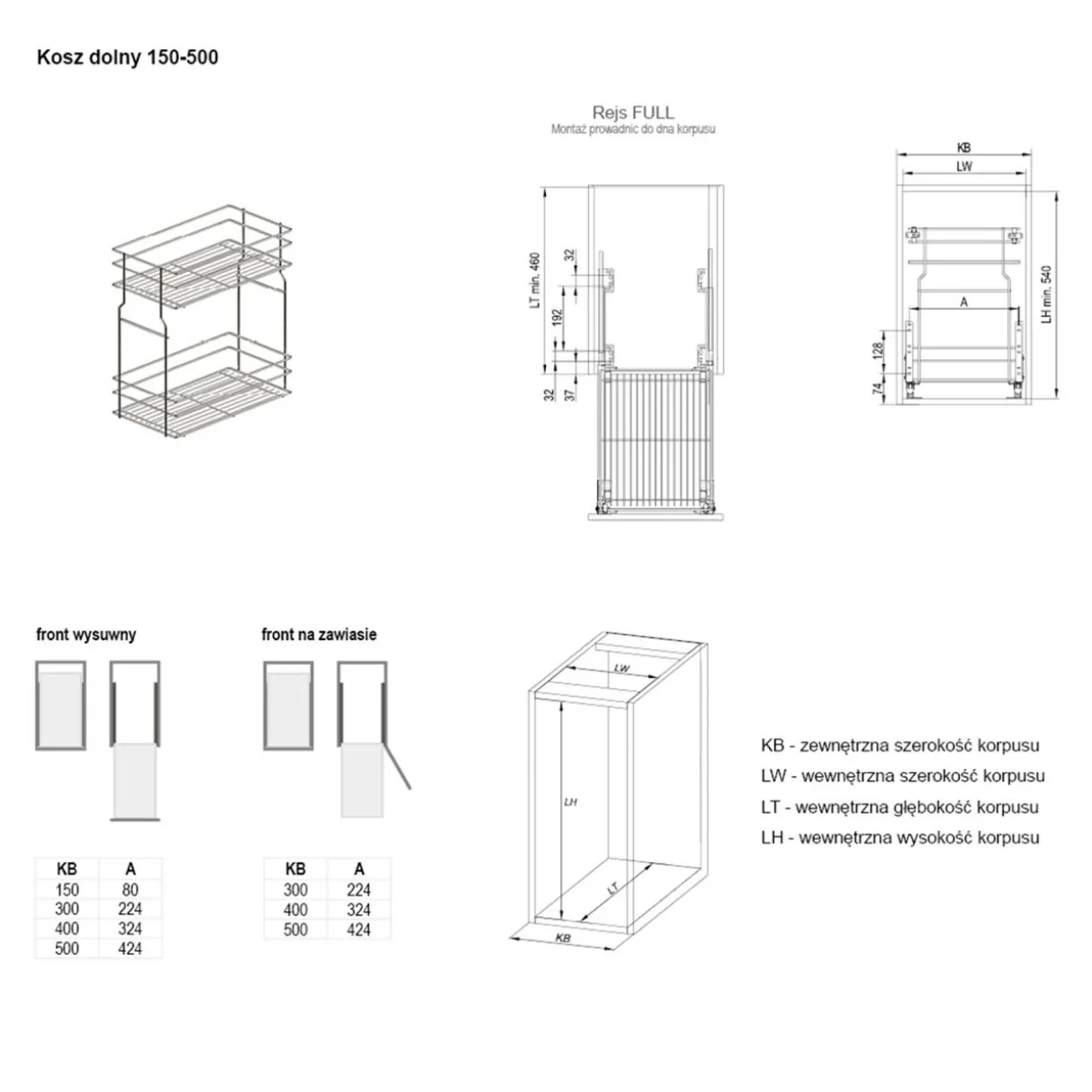 Kosze posiadają element, który umożliwia zamontowanie ich do szafek z ruchomym/wysuwanym frontem.