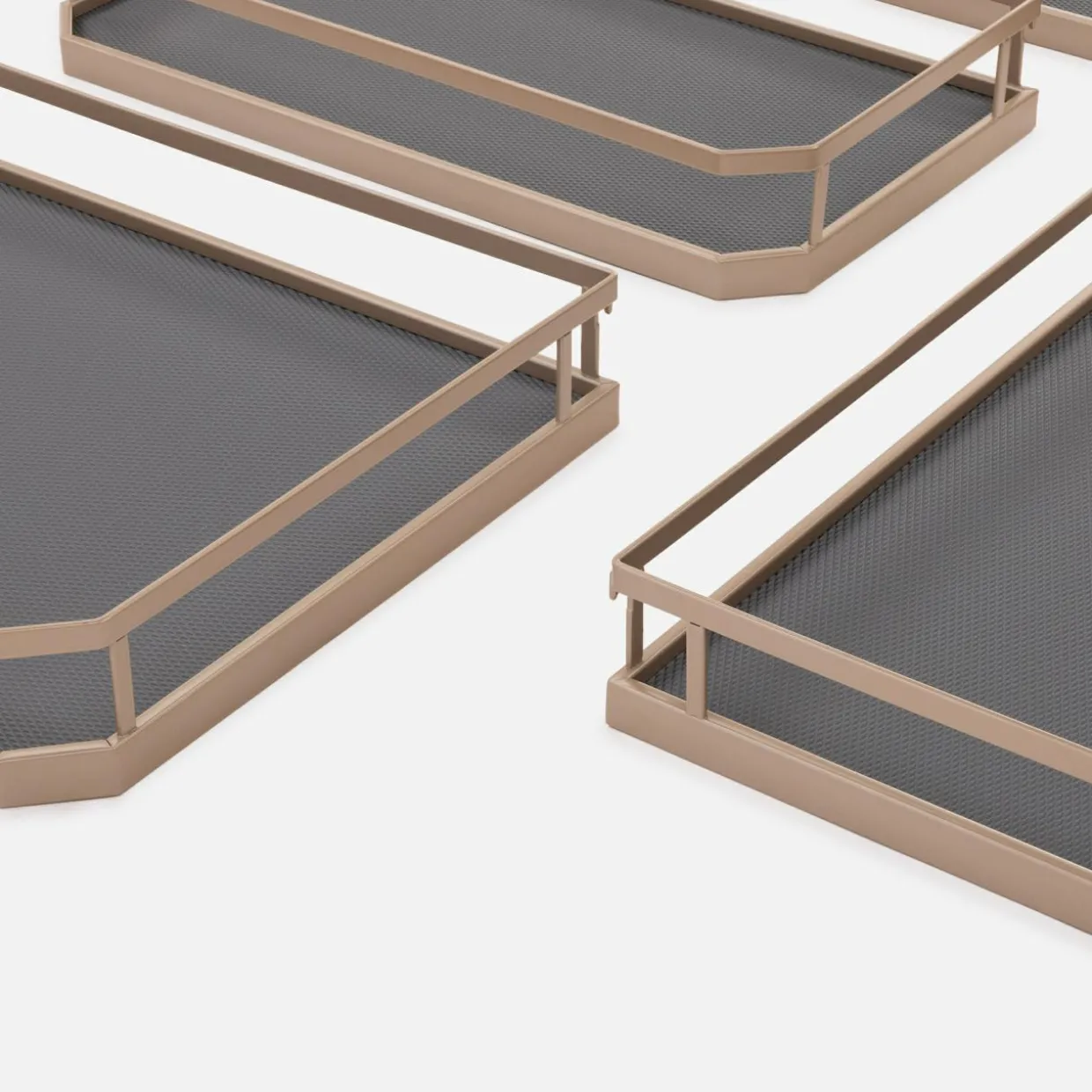 - Podstawa koszy została wykończona ciemnoszarym kolorem, natomiast brzegi i ścianki są w matowym odcieniu champagne gold. Ożywi on jasne wnętrza i pięknie zaakcentuje kuchnię w klimacie loft oraz retro.