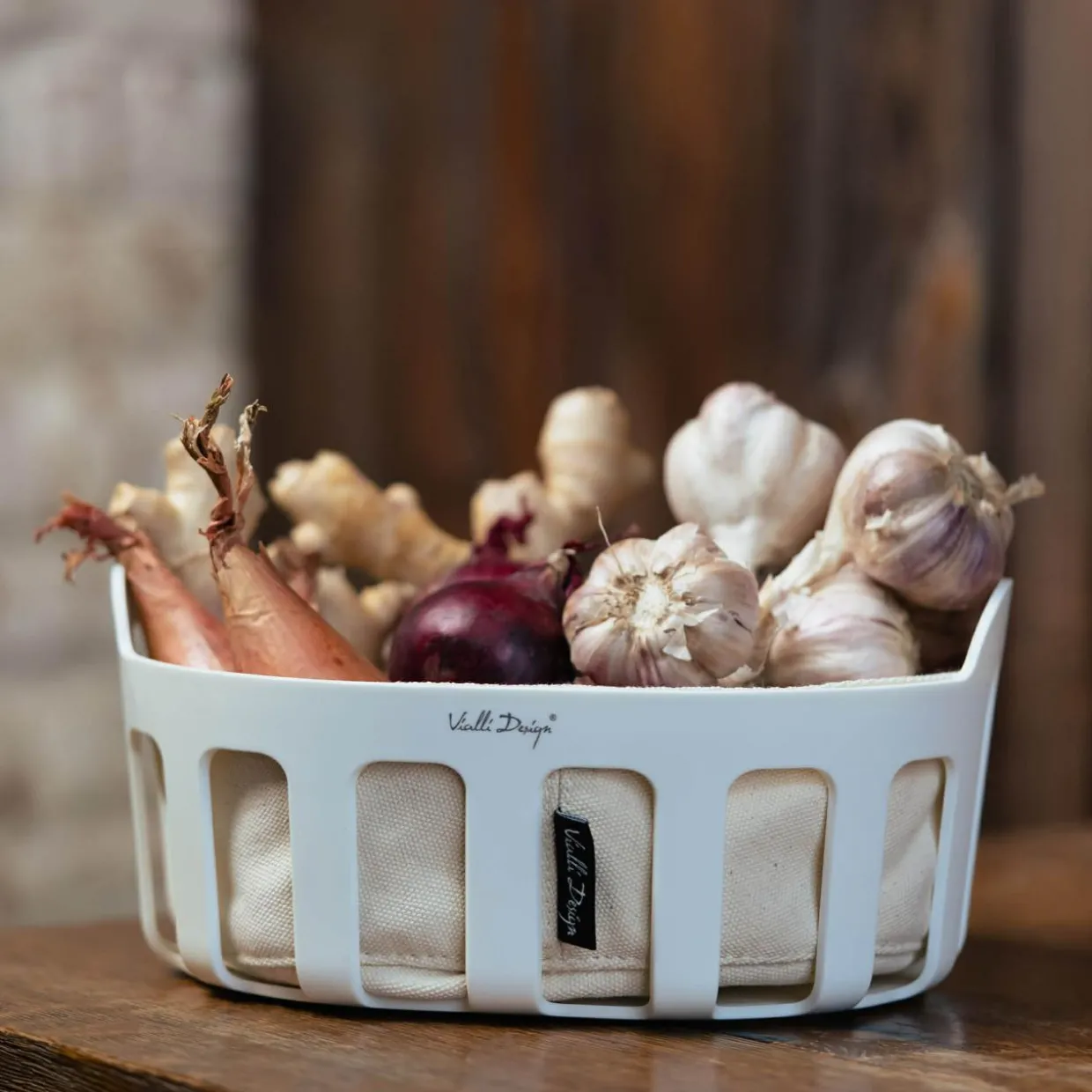 Koszyk na pieczywo z bawełnianym wkładem biały LIVIO