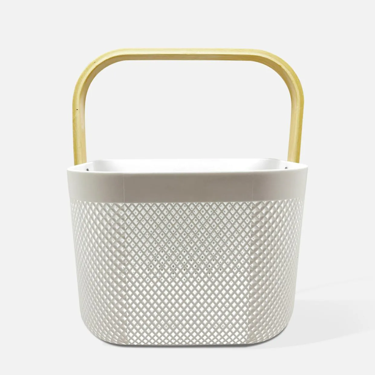 Koszyk z drewnianą rączką biały 24x24x18 cm