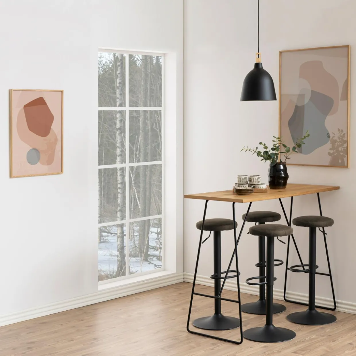 - Okrągłe siedzenie pozwala wygodnie rozsiąść się przy kuchennej wyspie.