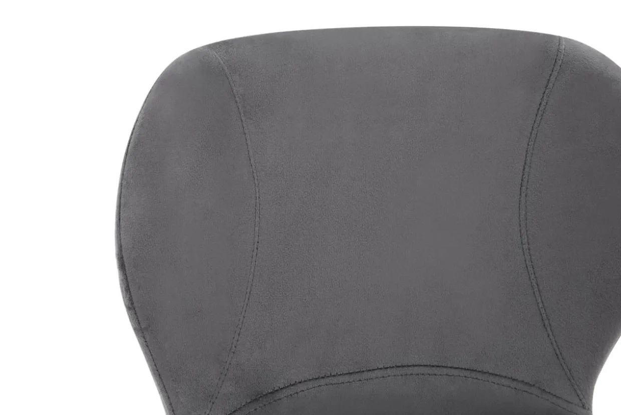 Krzesło obite jest welurem w szarym kolorze. Materiał pod wpływem dotyku delikatnie zmienia swój odcień.