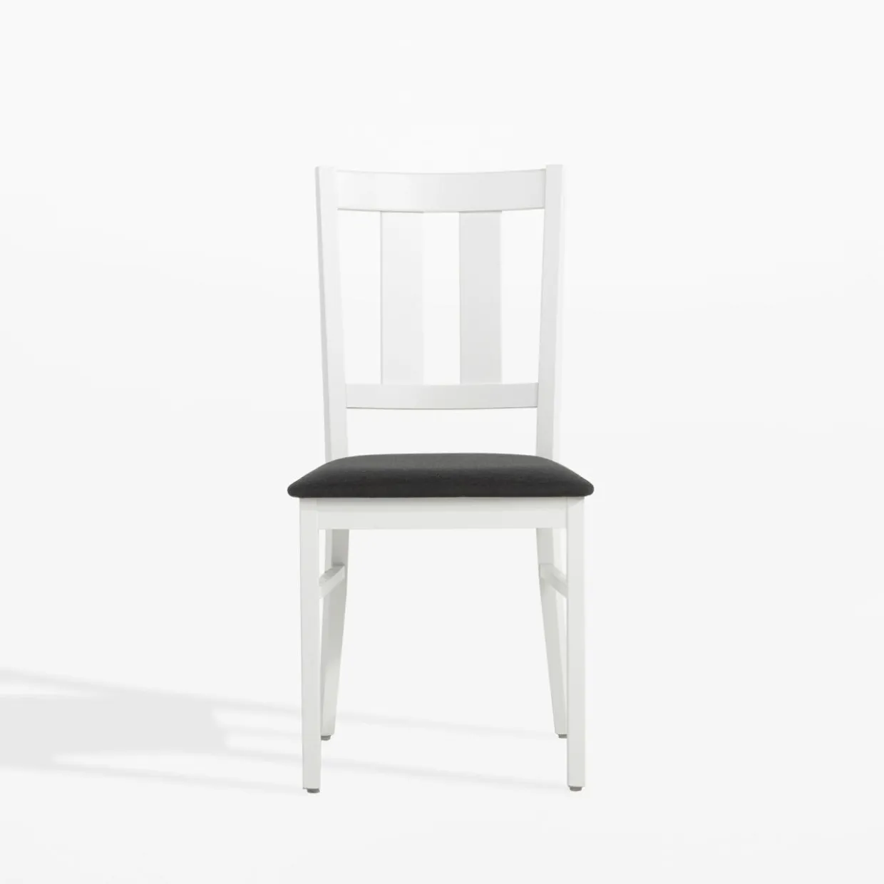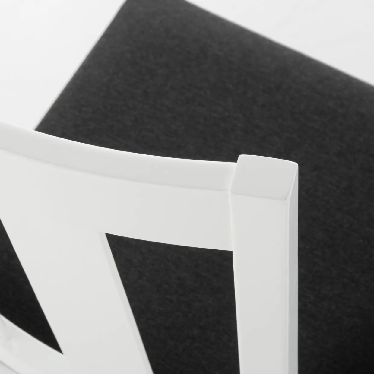 Białe krzesło do jadalni z czarnym siedziskiem z łatwością dopasujesz do wielu stołów.