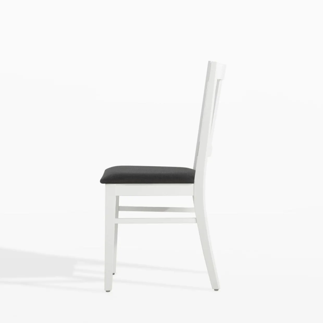 - Stelaż, nogi i oparcie krzesła LILA wykonano z drewna bukowego i wykończono lakierem w białym kolorze.
