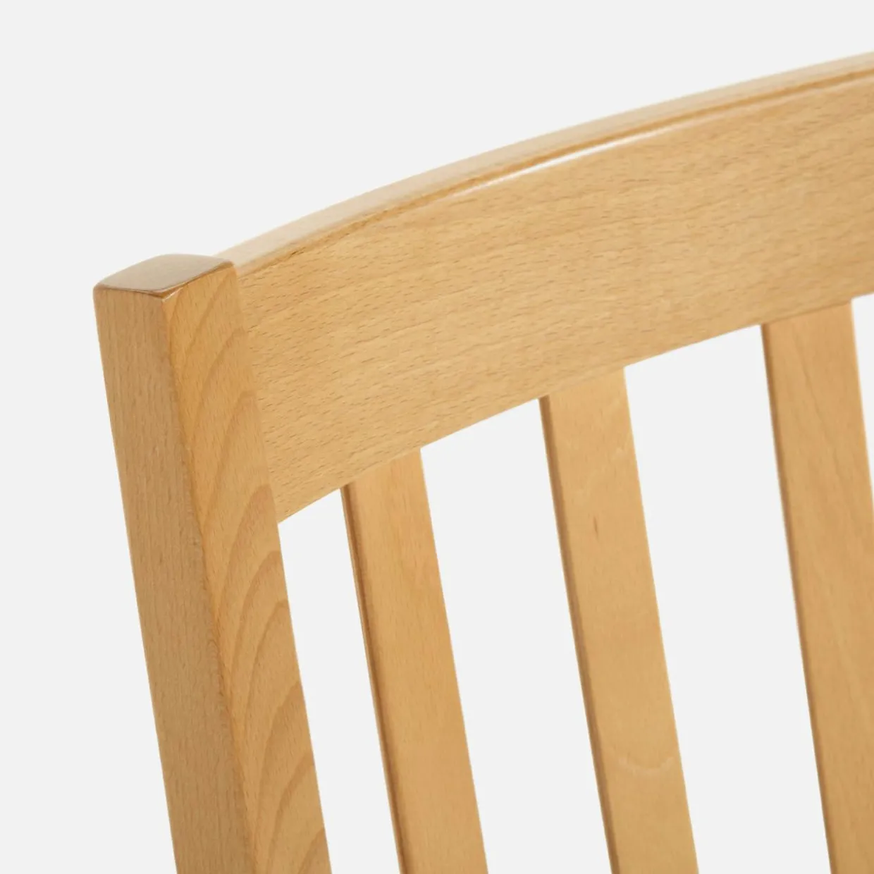 Krzesło z drewna bukowego pokryto warstwą bejcy w miodowym odcieniu oraz zabezpieczono lakierem.
