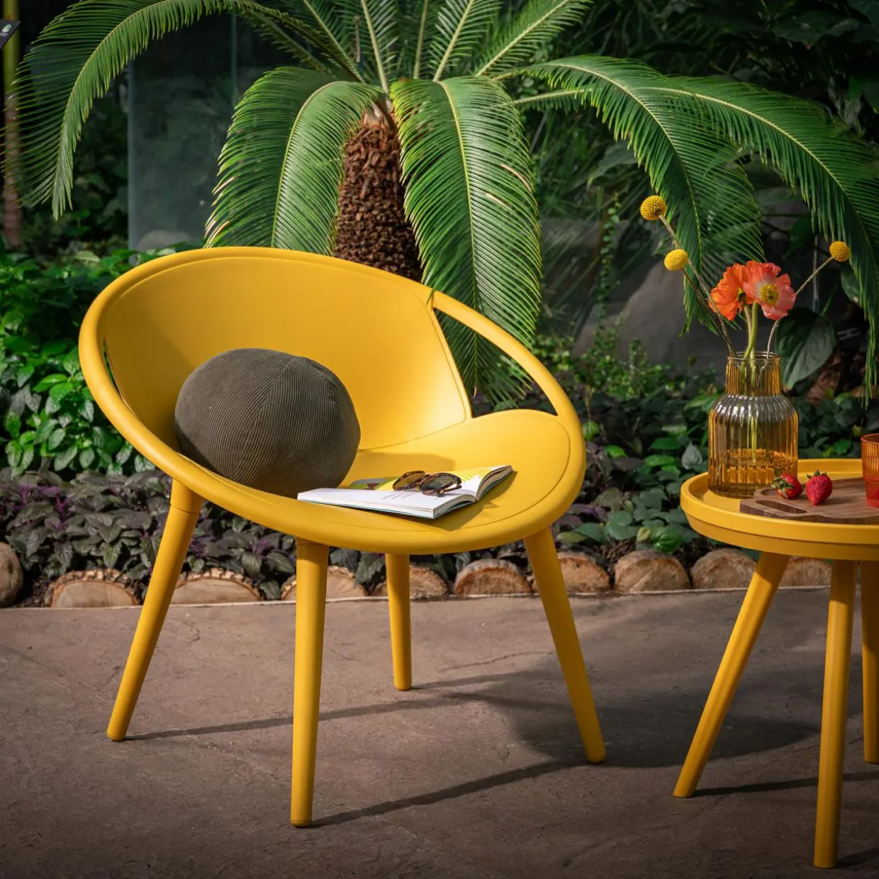 Dzięki swojej owalnej budowie krzesło HETTIMA aż zachęca, by na nim usiąść. Na dłuższy odpoczynek uzupełnij siedzenie poduszkami i rozkoszuj się promieniami słońca.