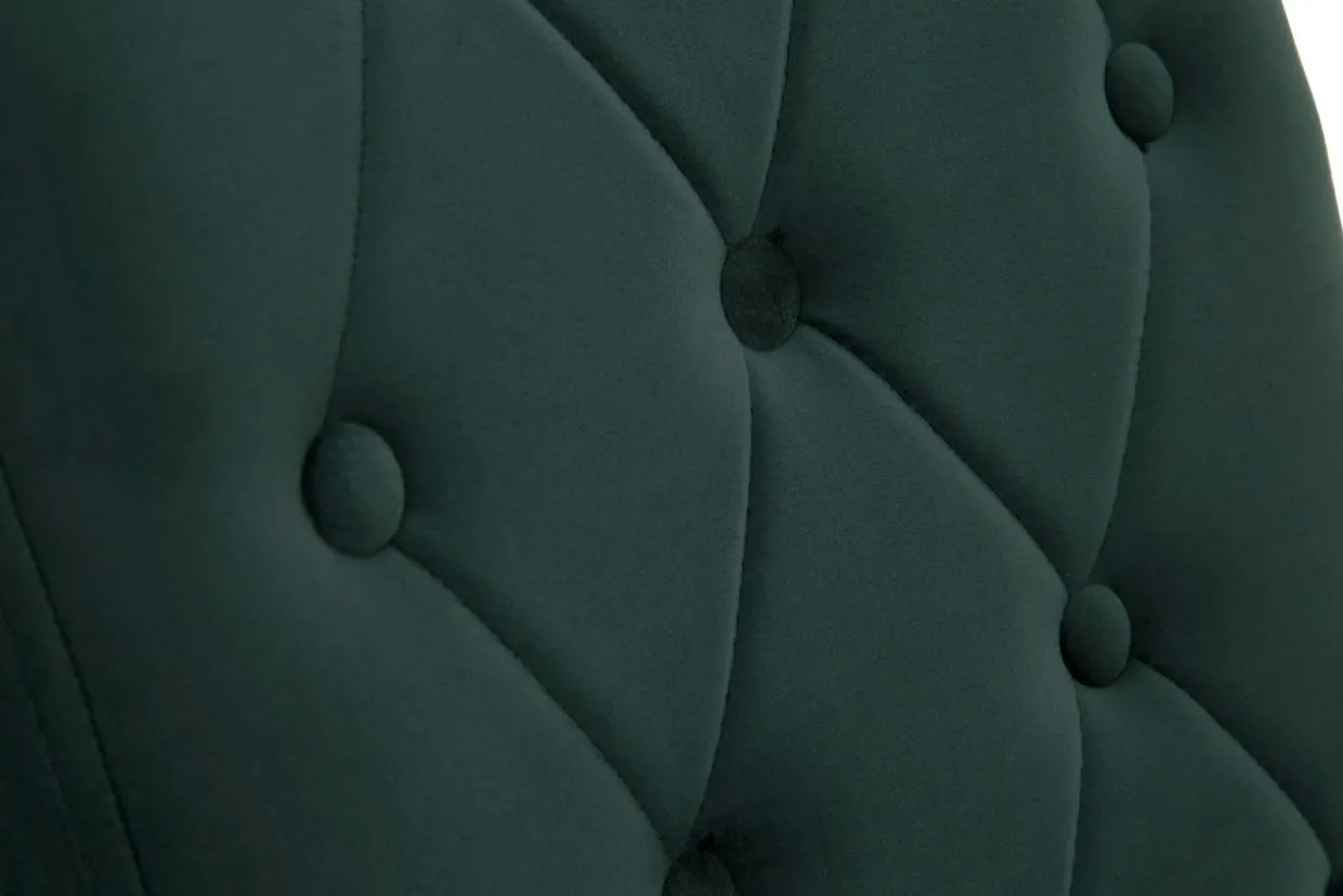 - Krzesło ma kolor butelkowej zieleni – uwielbianej przez miłośników eleganckich wnętrz.