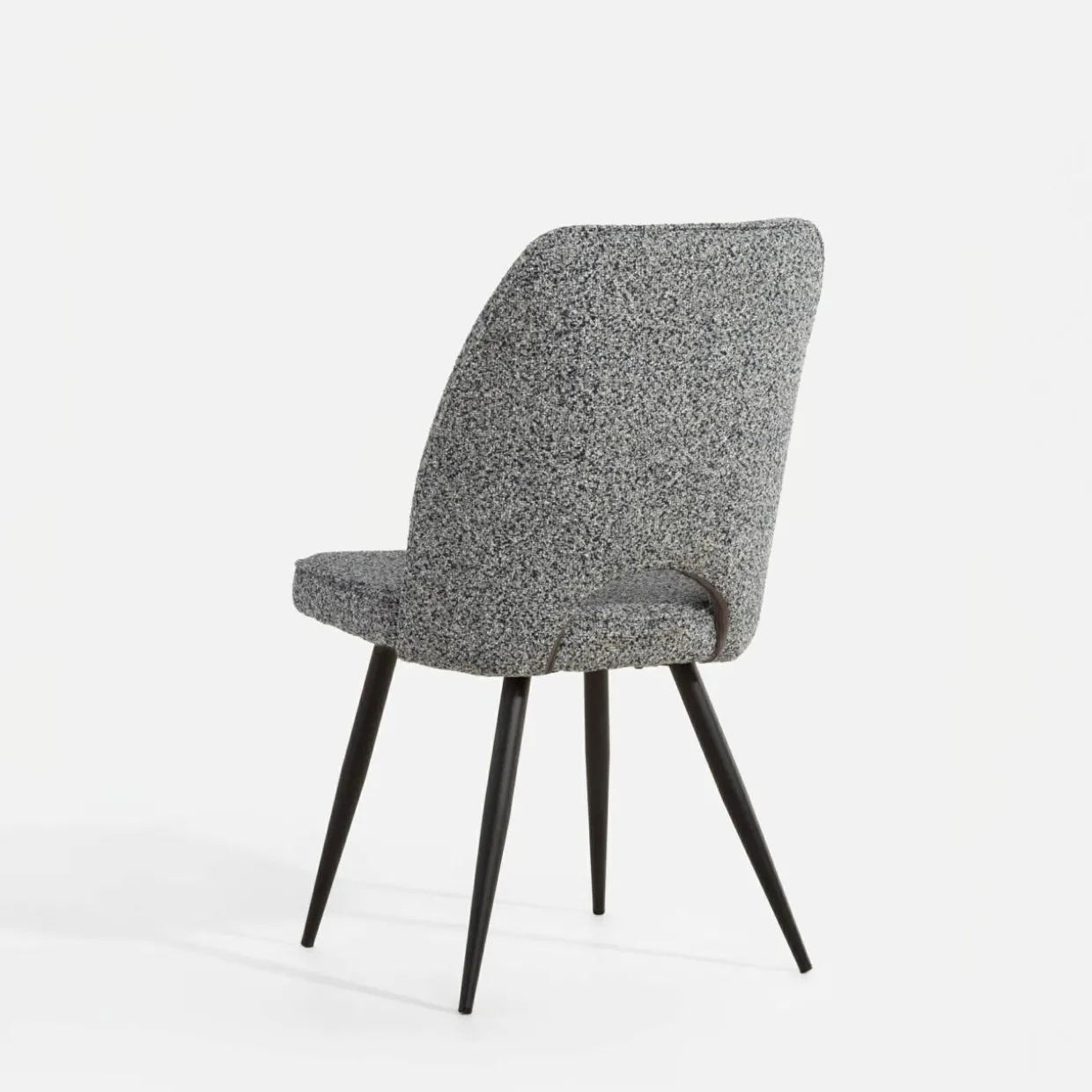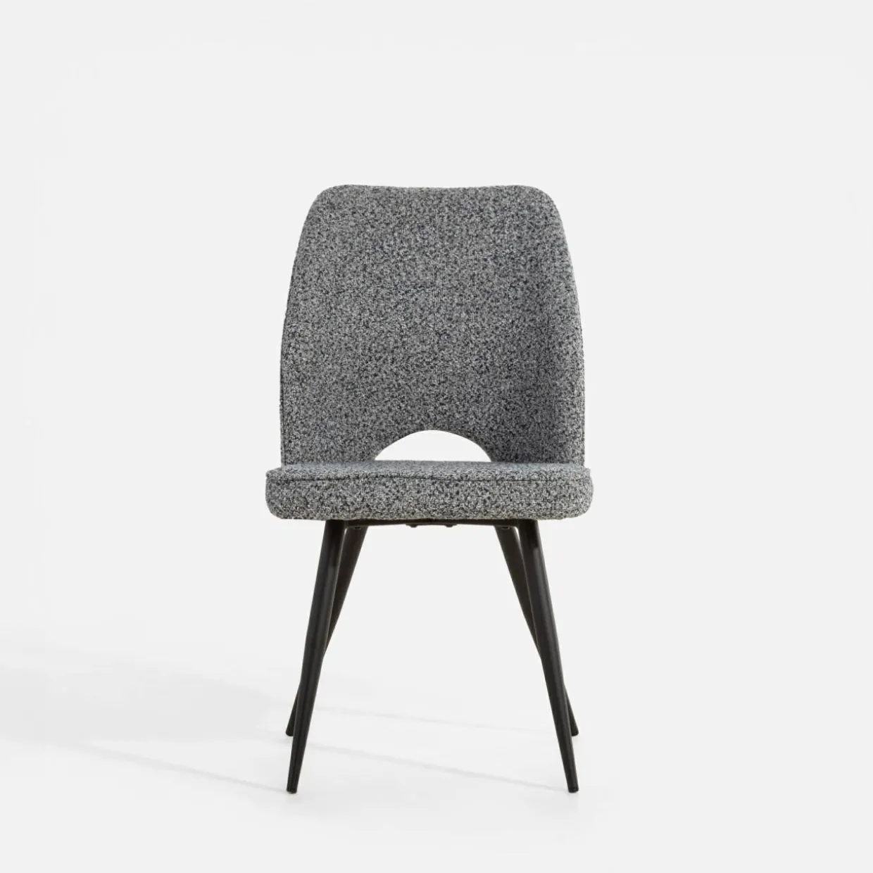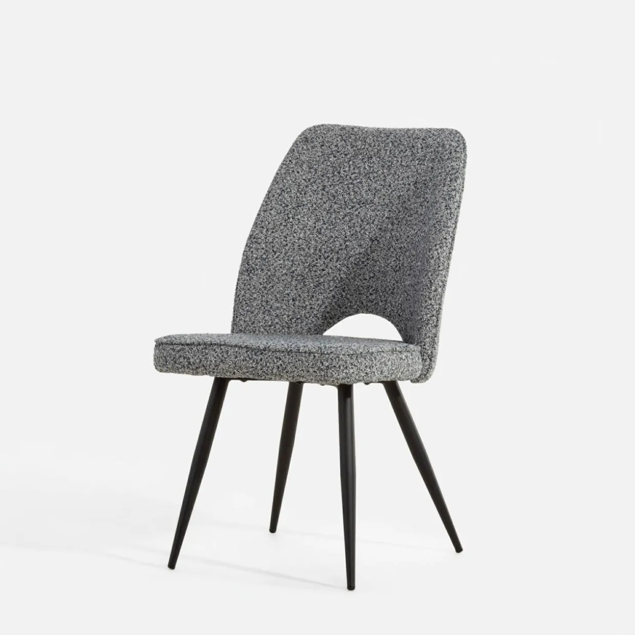 - Melanżowa, szara tkanina sprawia, że krzesło wyróżnia się na tle pomieszczenia. Rozjaśni ciemny wystrój jadalni lub dopełni salon w stonowanych barwach.