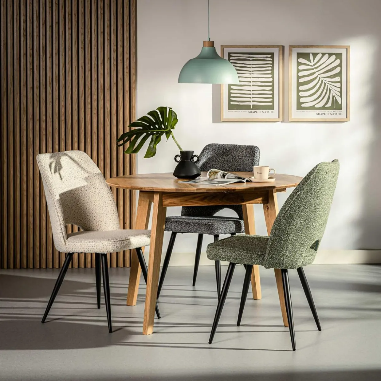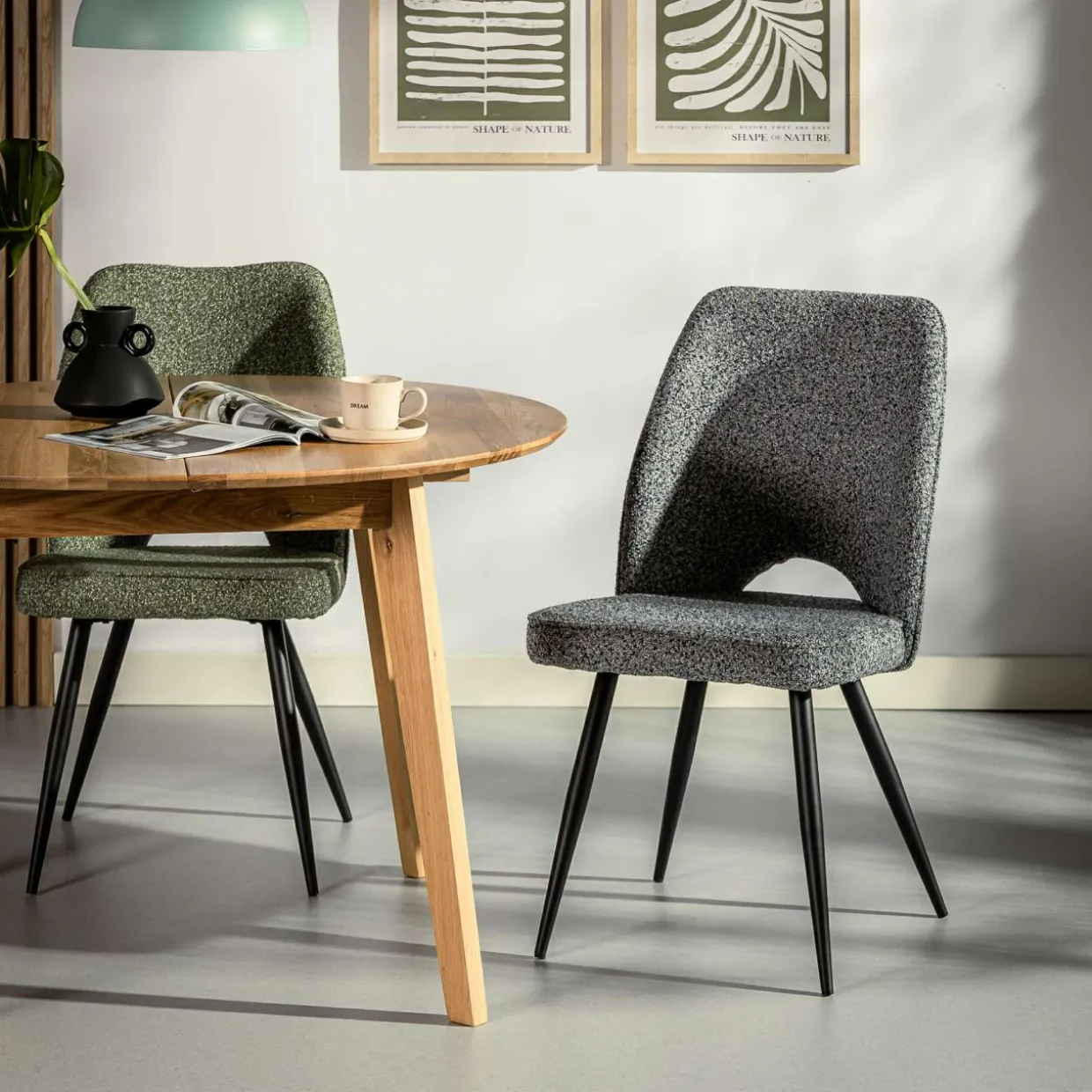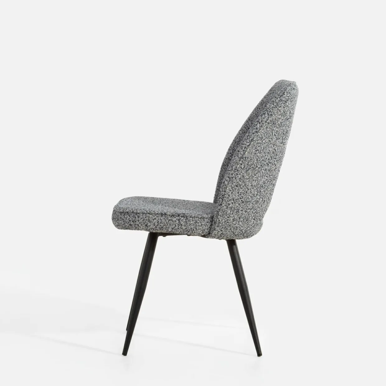 - Melanżowa, szara tkanina sprawia, że krzesło wyróżnia się na tle pomieszczenia. Rozjaśni ciemny wystrój jadalni lub dopełni salon w stonowanych barwach.