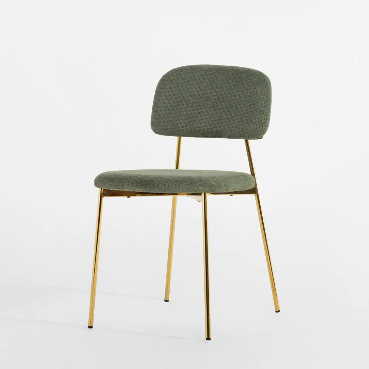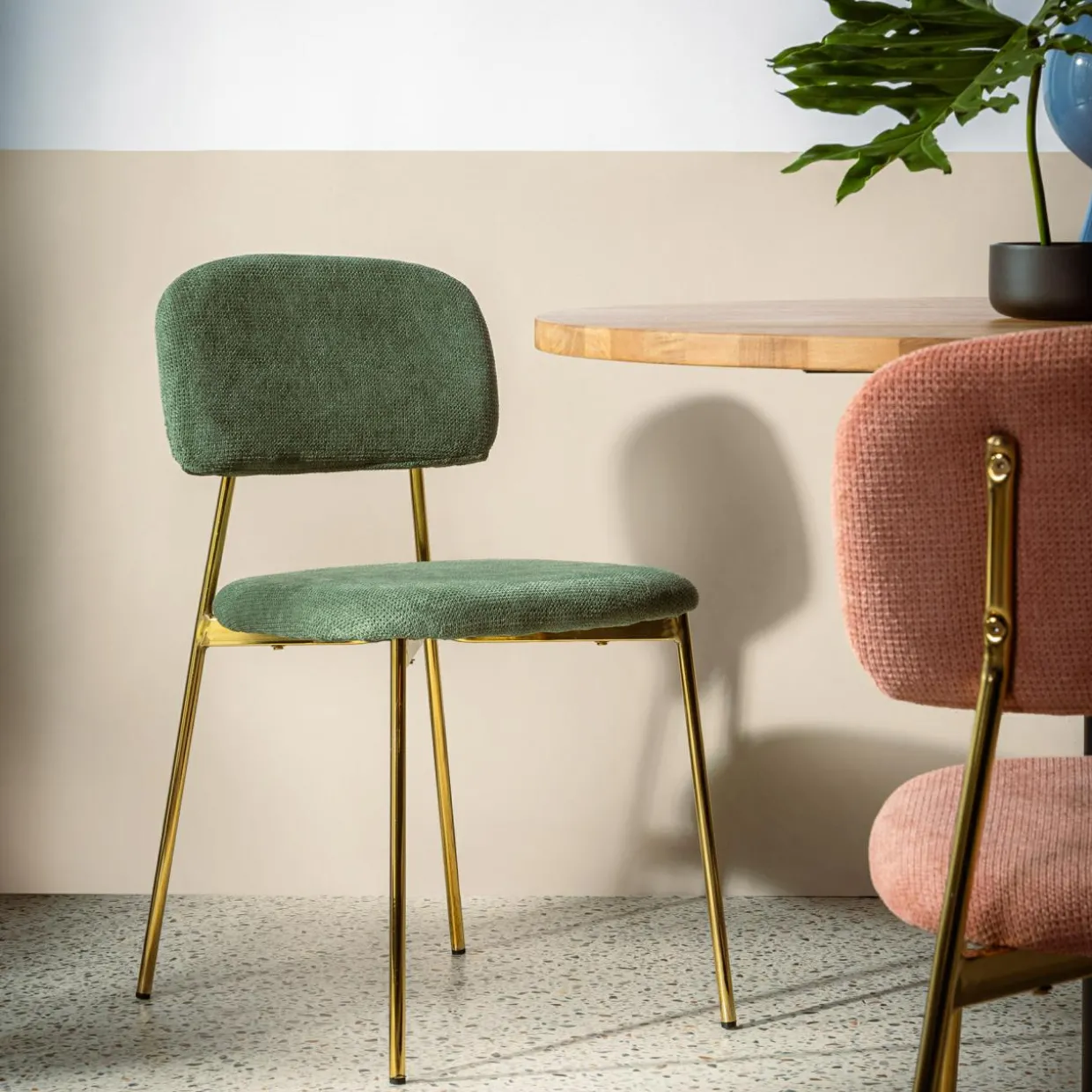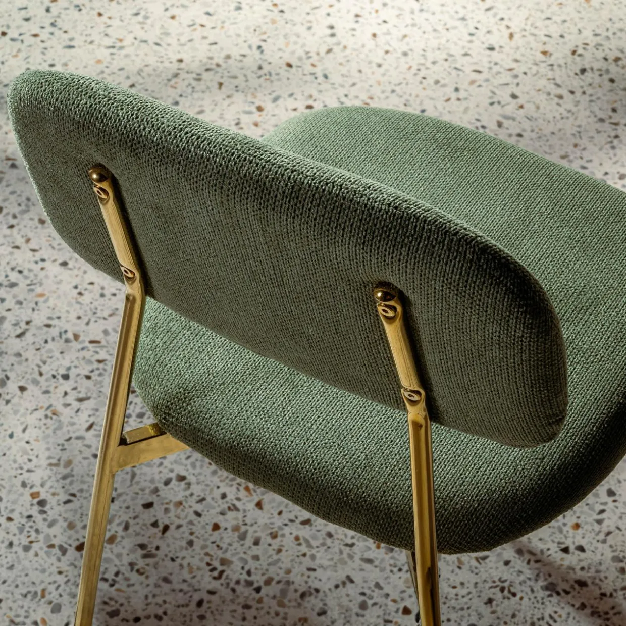 Gustujesz w eleganckich wnętrzach? Krzesło ERMENIO urzeknie Cię stylowym połączeniem zieleni i złota – pięknie wkomponują się w jadalnię urządzoną w stylu glamour lub art deco.
