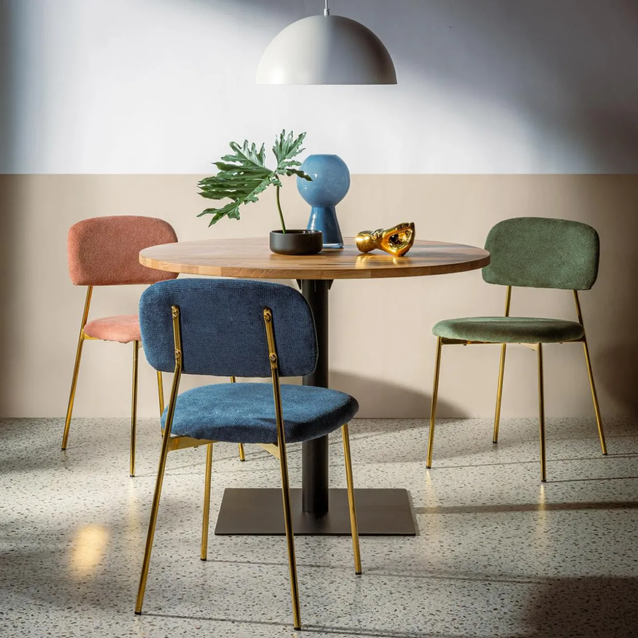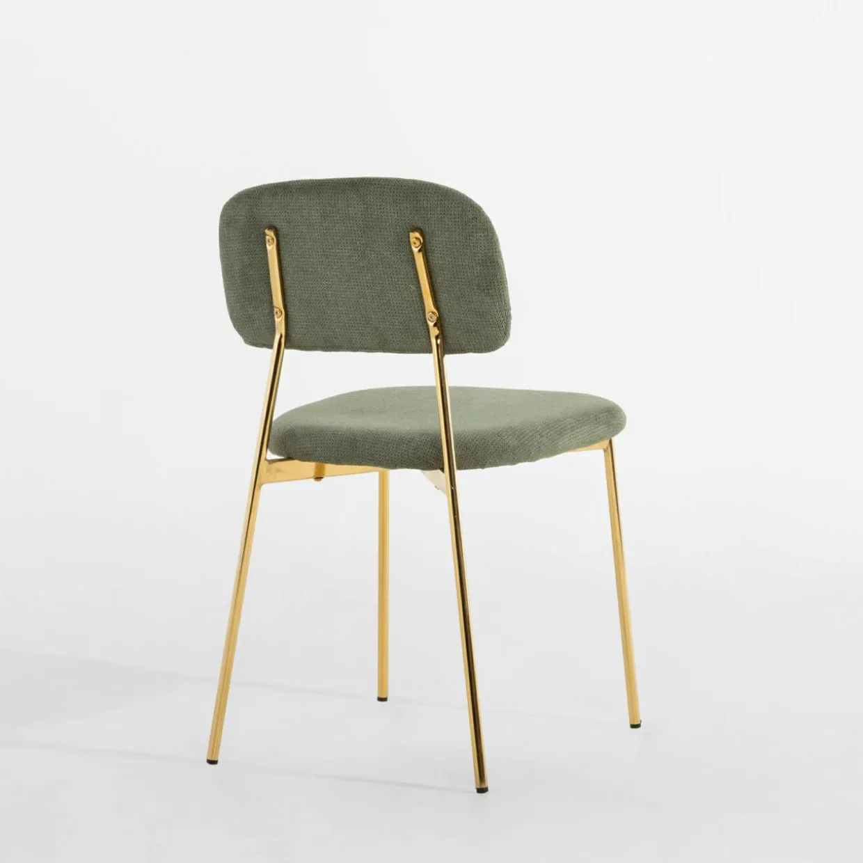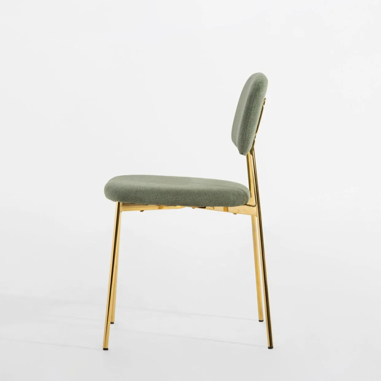 Gustujesz w eleganckich wnętrzach? Krzesło ERMENIO urzeknie Cię stylowym połączeniem zieleni i złota – pięknie wkomponują się w jadalnię urządzoną w stylu glamour lub art deco.