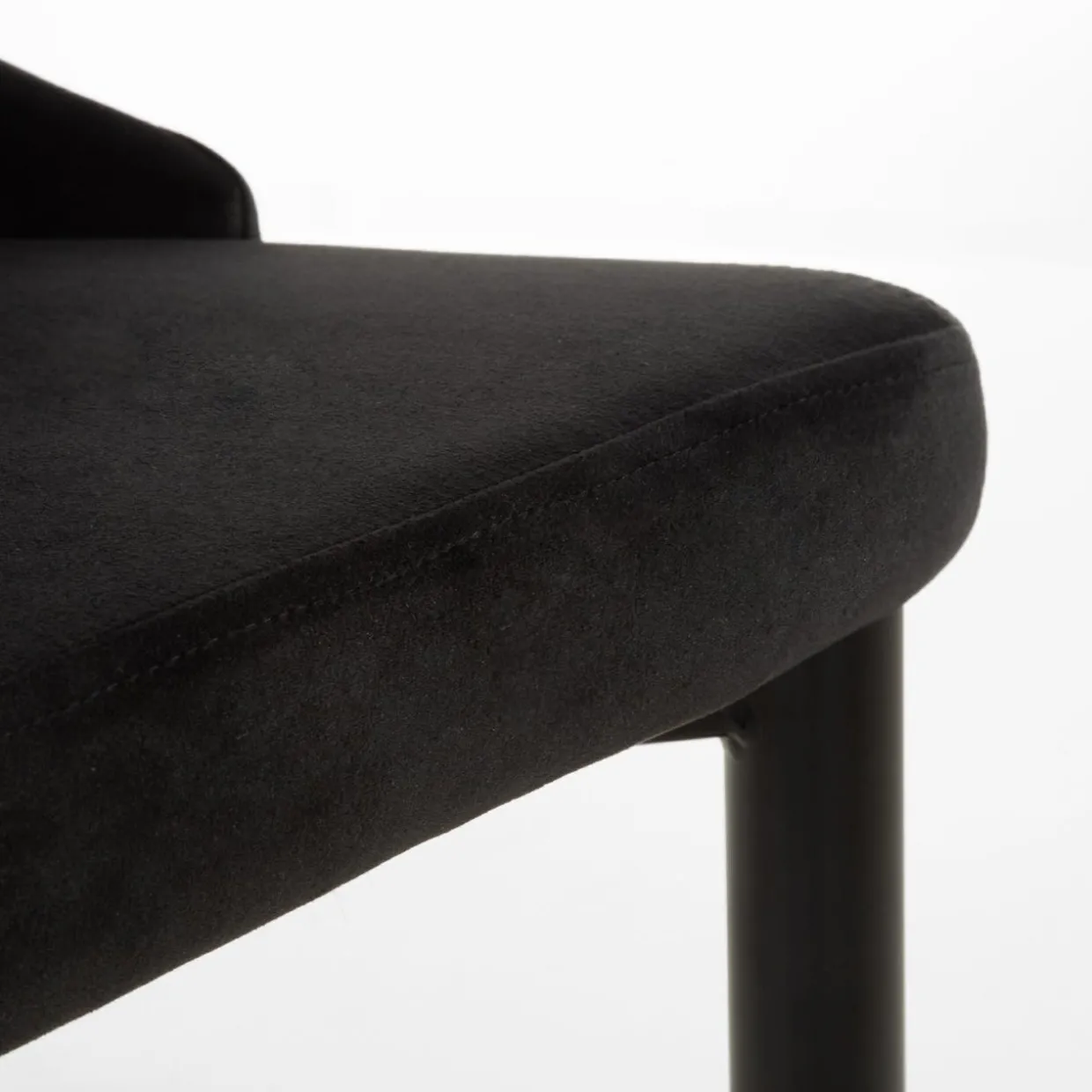 Krzesło HARBORE cechuje całkowicie czarne wybarwienie zarówno stalowego stelaża jak i siedziska wykończonego miękkim welurem. Krzesło wpisze się w nowoczesne i loftowe wnętrza. Będzie świetnym tłem dla innych kolorów, skomponuje się z niemal każdym odcieniem stołu.