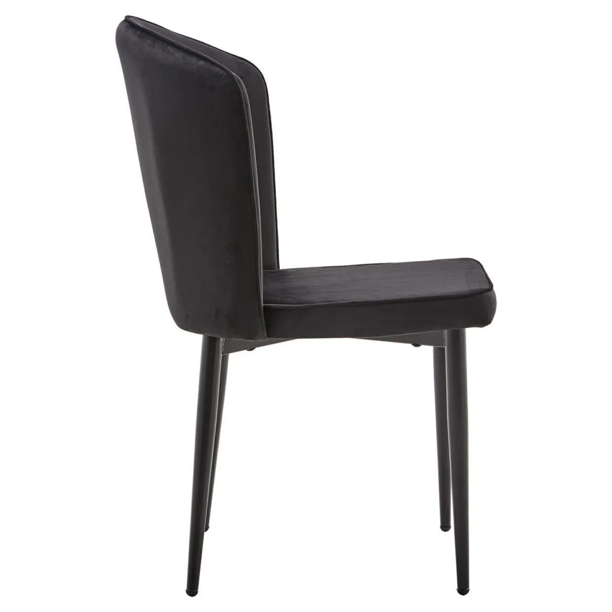 - Welur w kolorze aksamitnej czerni doskonale sprawdzi się zarówno przy prostych, minimalistycznych stołach, jak i w bardziej wyrafinowanych aranżacjach.