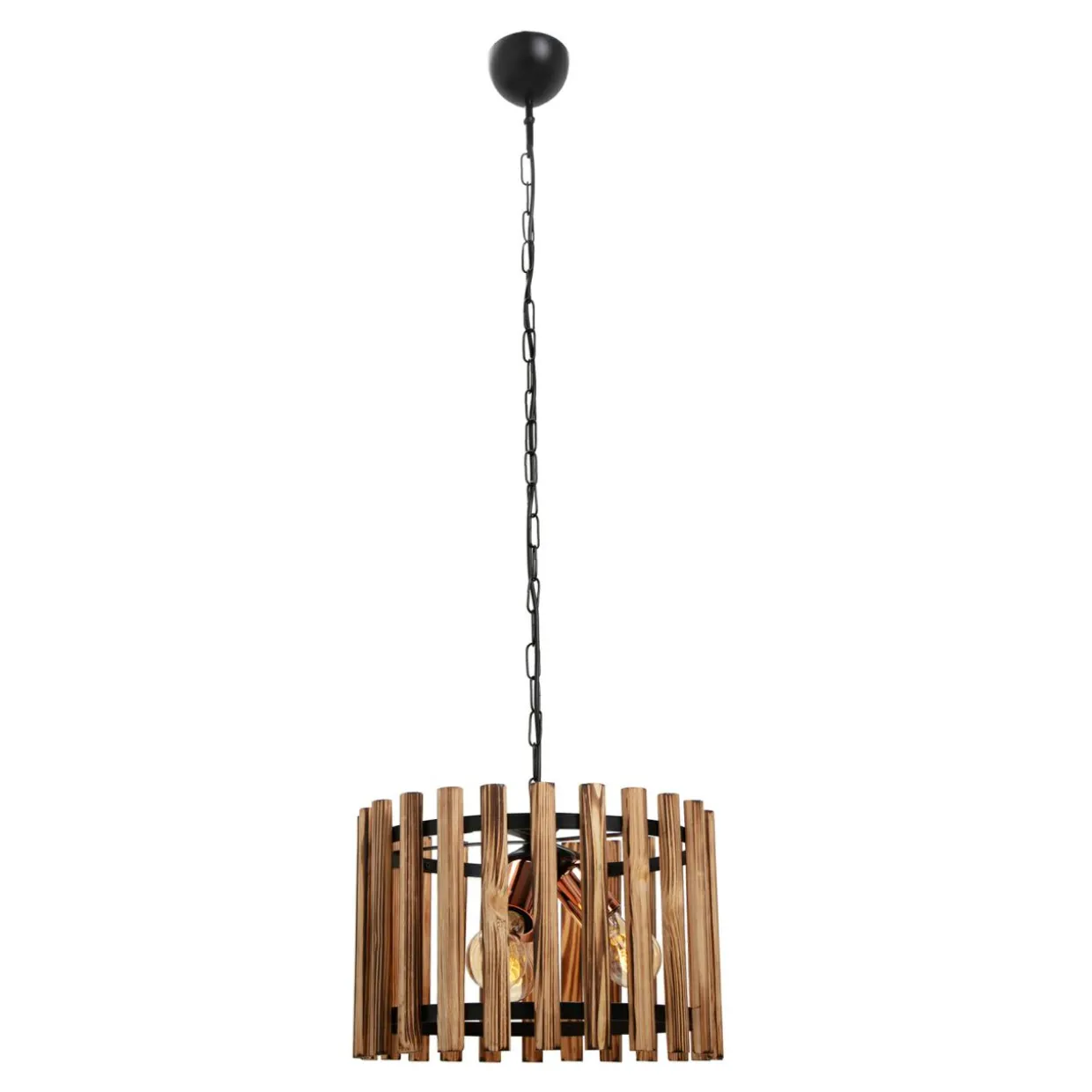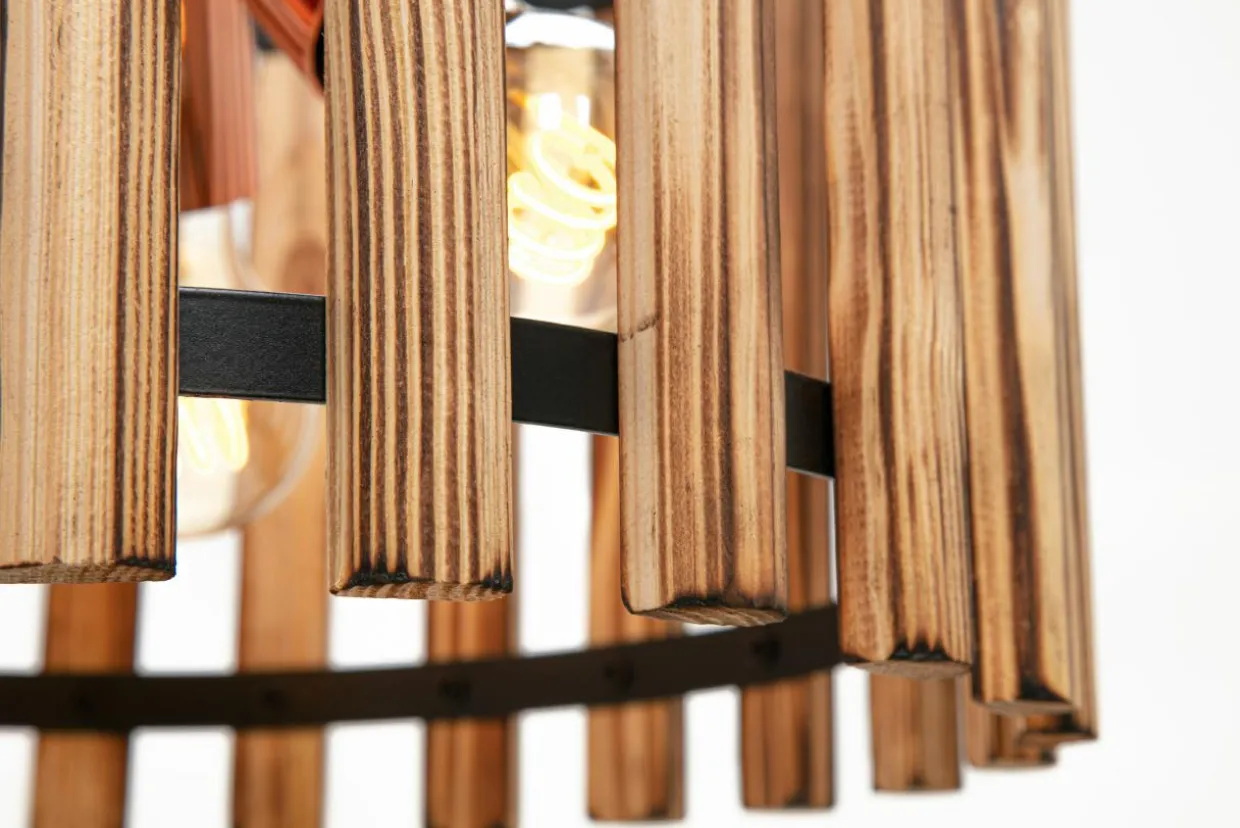 - Obudowany drewnem klosz posiada oprawę dla 3 żarówek.