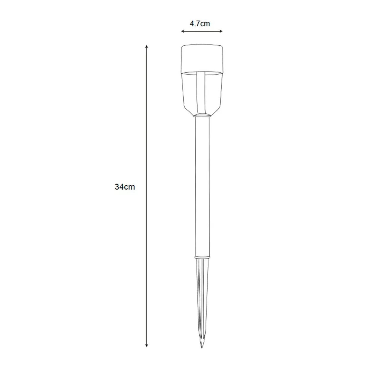 - Zaostrzony szpikulec w dolnej części ułatwia osadzenie lampy w podłożu.
