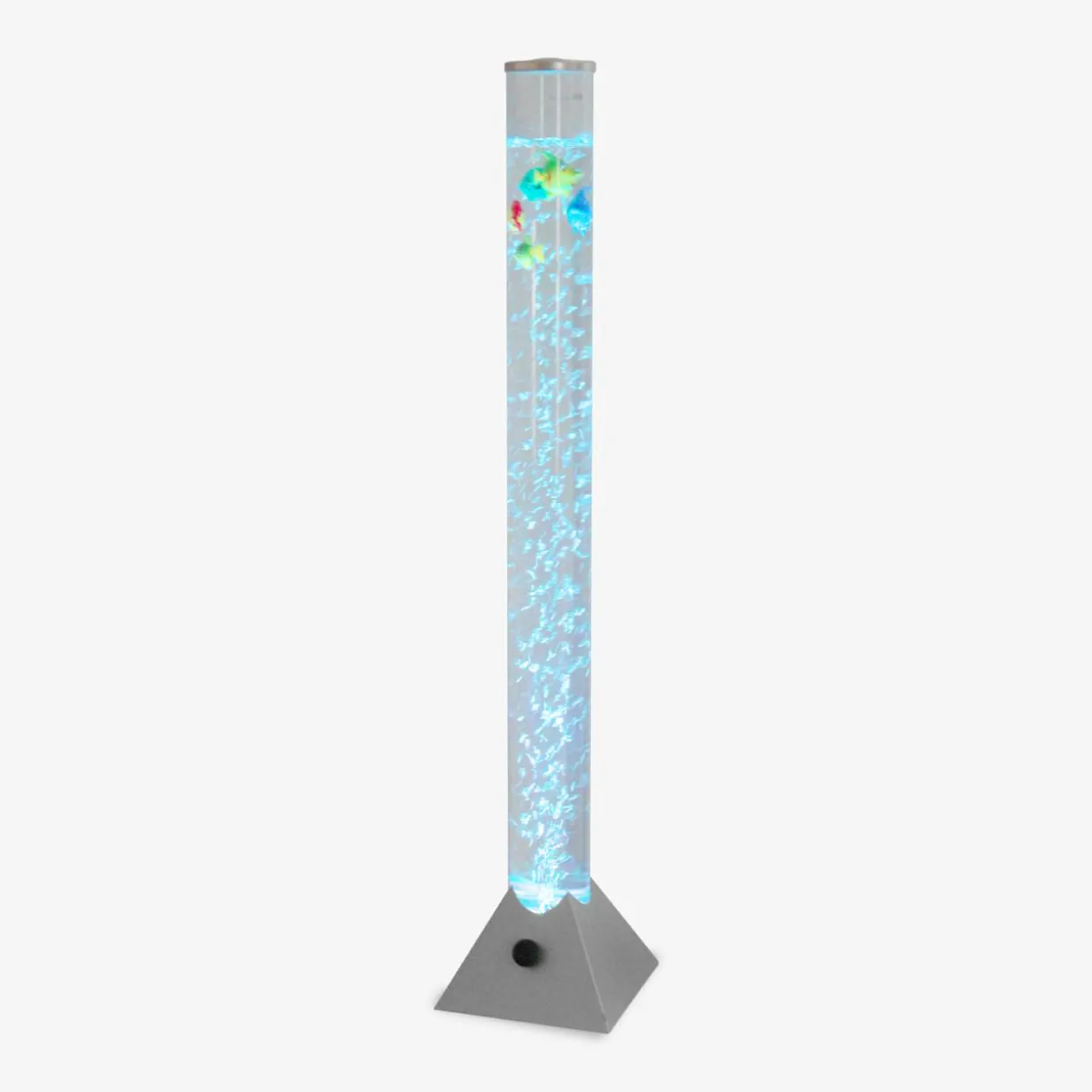 AQUA na kształt walca. Jej czar tworzą wykonane z tworzywa kolorowe rybki pływające w przejrzystej wodzie. Po napełnieniu możesz ją ustawić w rogu pomieszczenia.