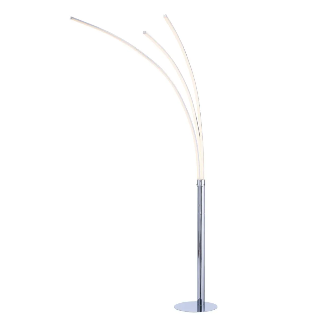 Metalowa podstawa lampy wykończona w kolorze chrom posiada trzy ramiona, z zintegrowanym oświetlenie typu LED. Każde z ramion emituje światło o ciepłej temperaturze barwowej 3000K. Strumień świetlny lampy wynosi 1320 lumenów.