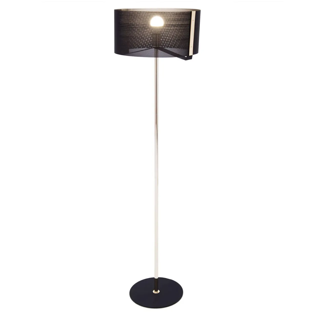 Lampa podłogowa ETRO dodaje pomieszczeniu szyku i elegancji. Świetnie sprawdza się jako oświetlenie uzupełniające, zwłaszcza w połączeniu z ciemniejszymi aranżacjami, do jasnego wnętrza wprowadza zawsze modny element kontrastu. Posiada oprawę dla pojedynczej żarówki typu E27 o mocy maksymalnej 40W.