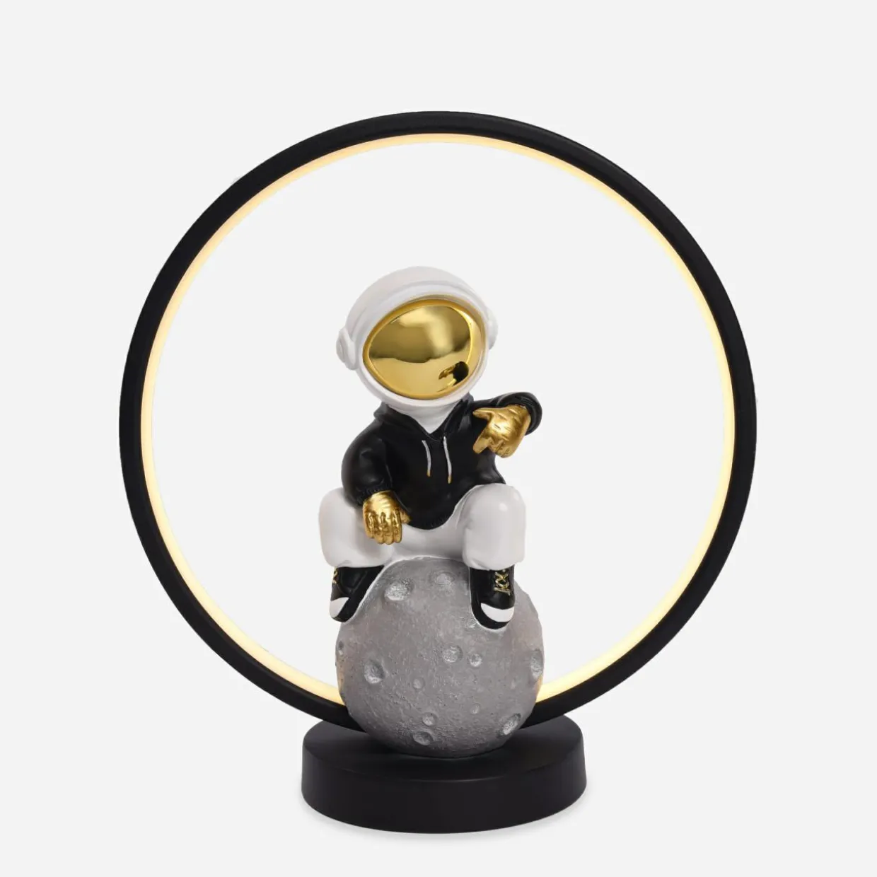 - Wbudowane oświetlenie LED sprawia, że po podłączeniu do źródła zasilania ASTRONAUTA zmienia się z dekoracji lampkę nocną.