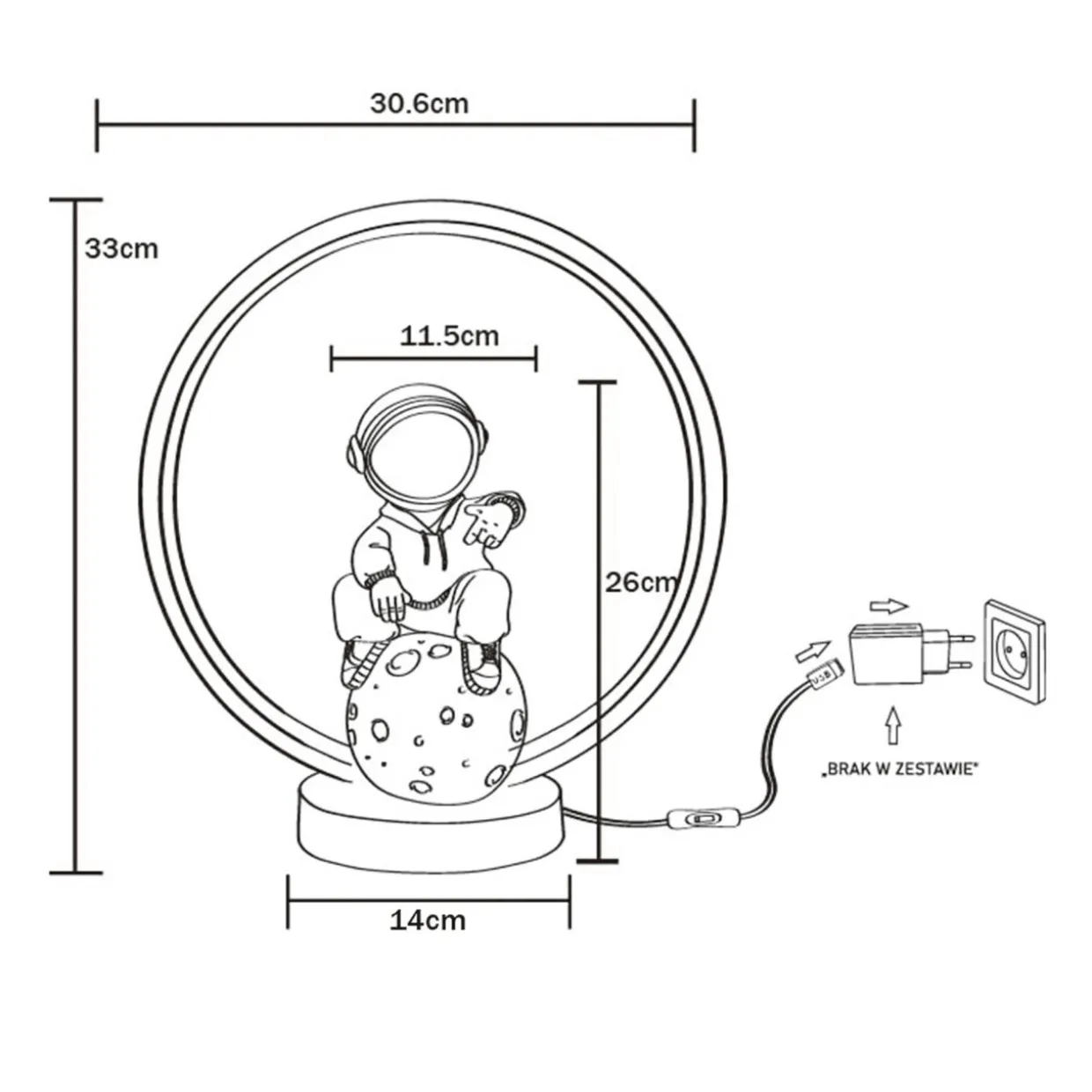Lampa ASTRONAUTA LED mierzy 33 cm.