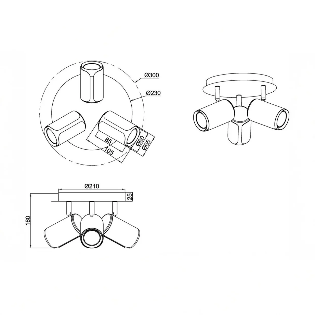 Ten model lampy GILLAN posiada oprawę dla 3 żarówek typu GU10 o mocy maksymalnej 10W.