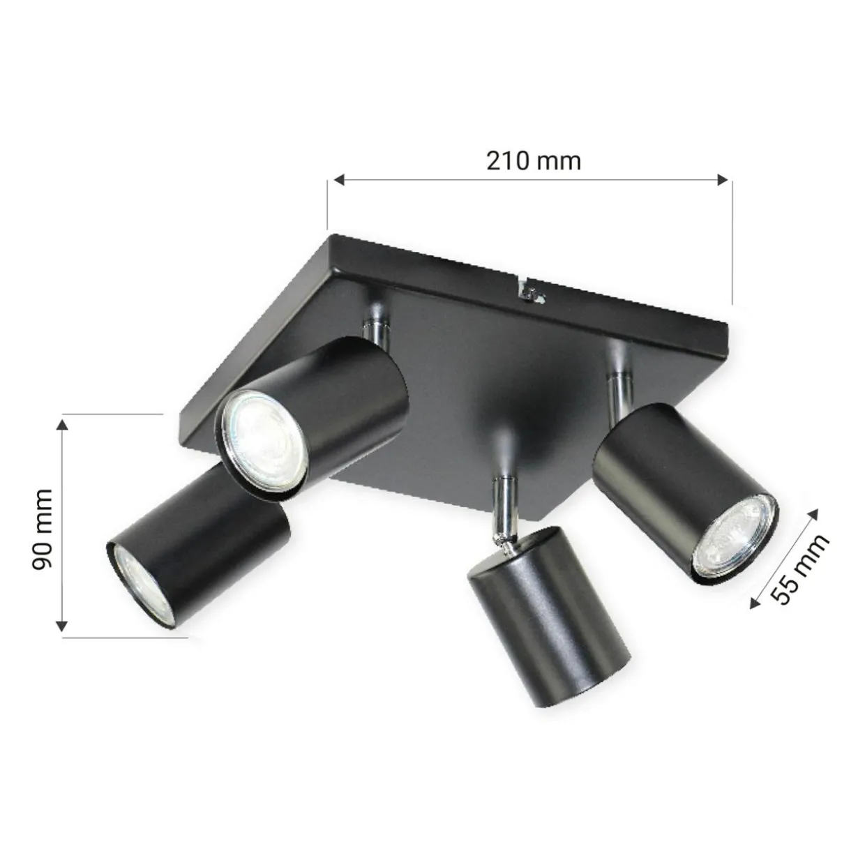 - lampa z 4 reflektorami sprawdza się jako oświetlenie główne pomieszczeń, a regulowane położenie kloszy pozwoli na dopasowanie kąta padania światła.