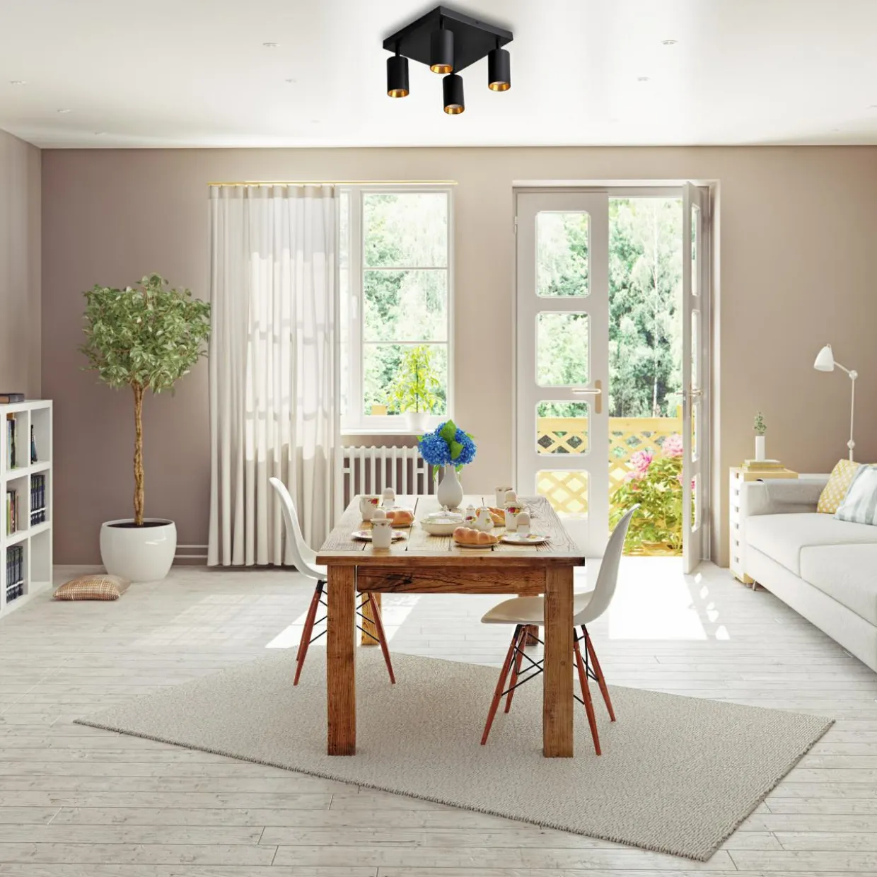 Podoba Ci się czarno-złota kolorystyka lampy? Jeśli wolisz bardziej stonowany dobór kolorów, mamy dla Ciebie rozwiązanie. Lampa MARIBEL posiada dodatkowy pierścień dekoracyjny w czarnym kolorze do każdego z reflektorów. Wystarczy go wymienić i masz zupełnie inną wizualnie lampę.