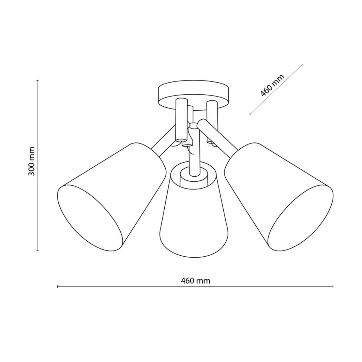 - Podstawa lampy ociepla wizualnie wnętrze i dobrze komponuje się z 3 białymi abażurami z tkaniny o tradycyjnym, trapezowym kształcie.