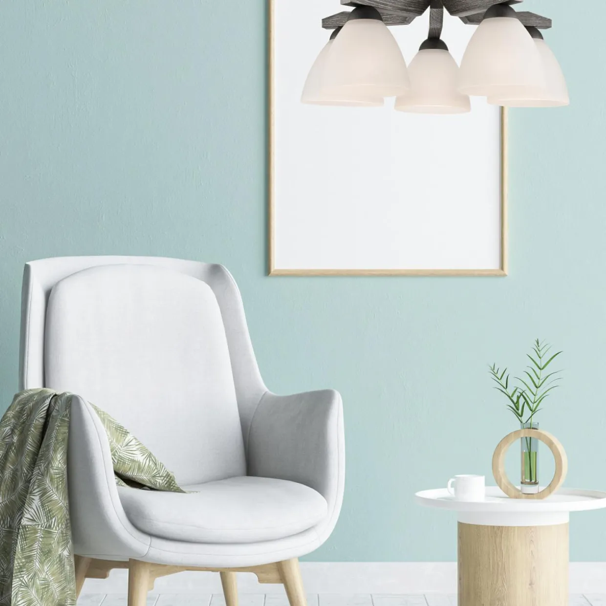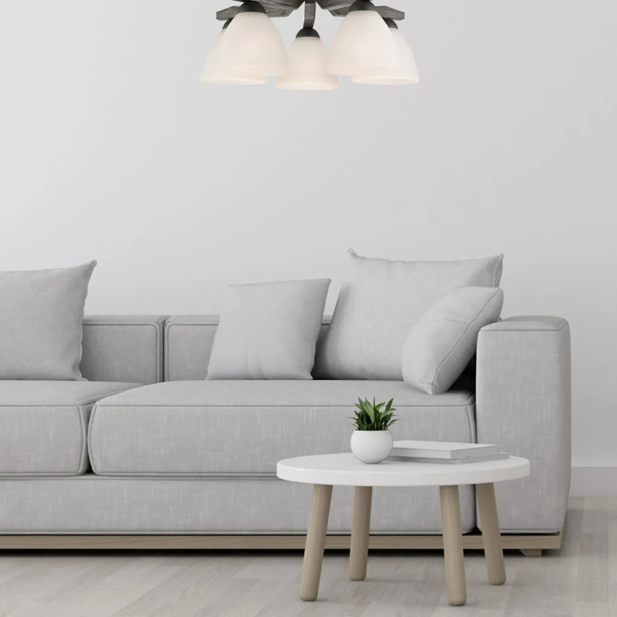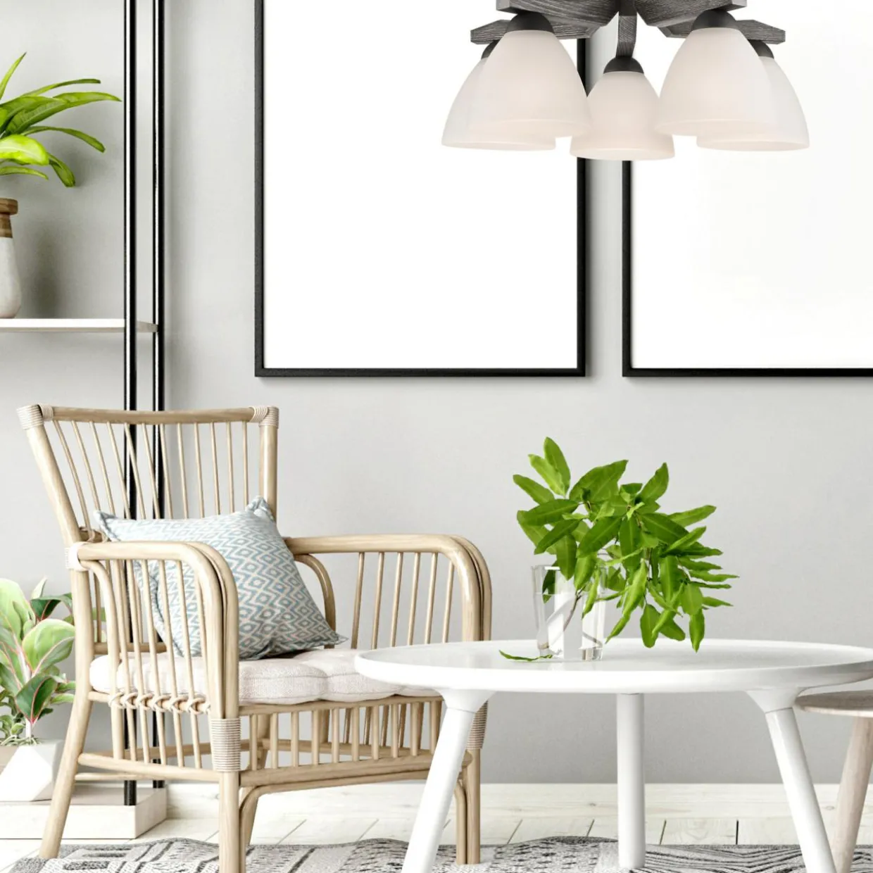 - lampę sufitową z 5 kloszami