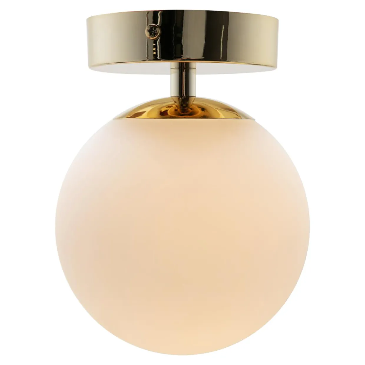 Złota kolorystyka okrągłej podstawy oraz zwieńczenie w postaci okrągłego, mlecznobiałego klosza w cudowny sposób lawiruje pomiędzy nowoczesnym designem, a zachowawczą formą.