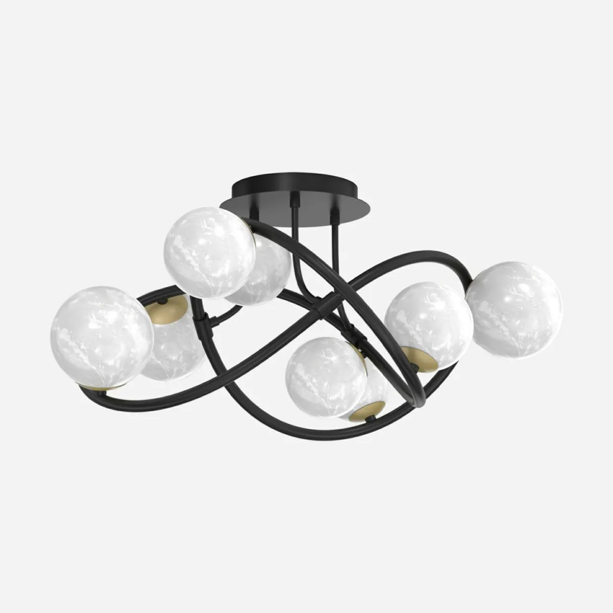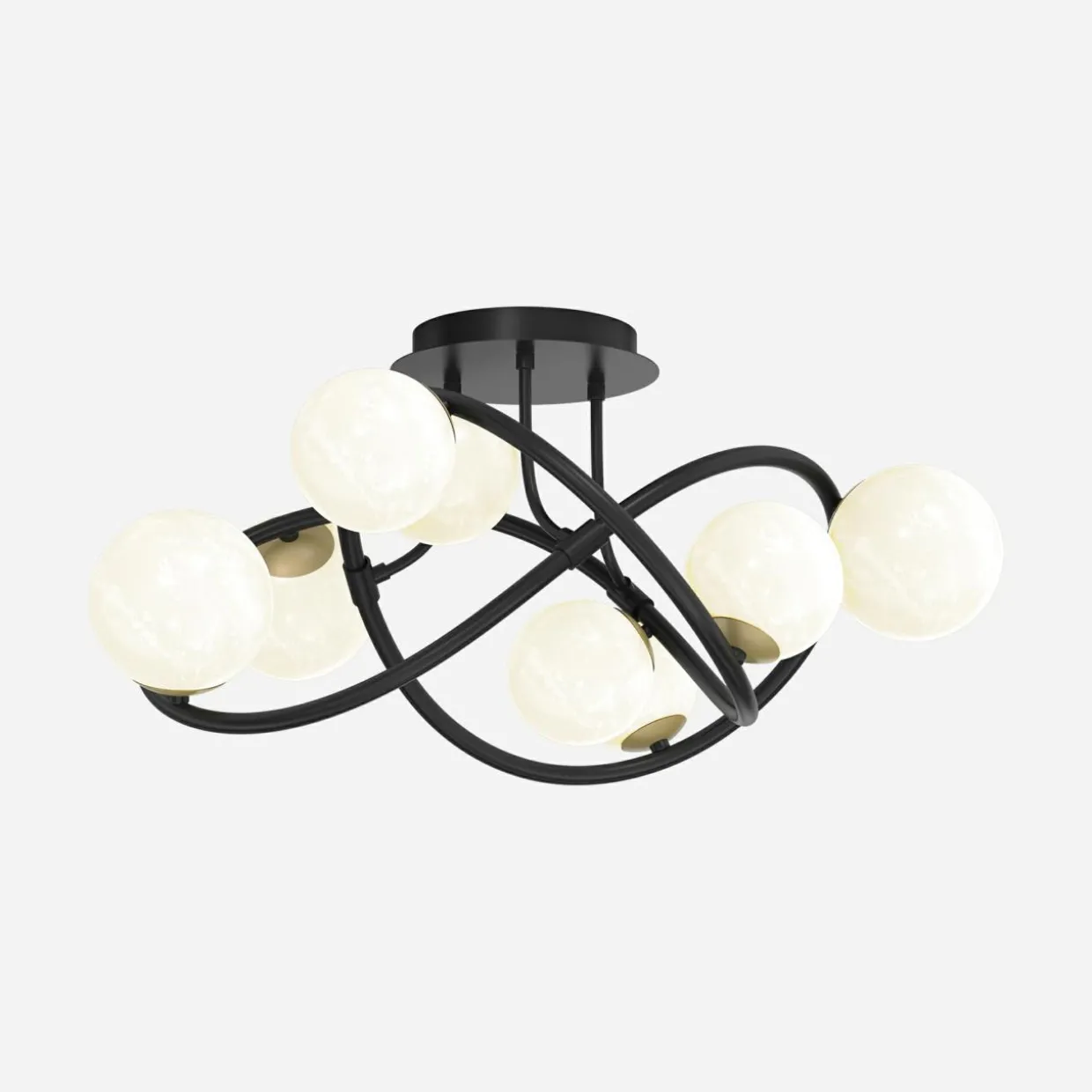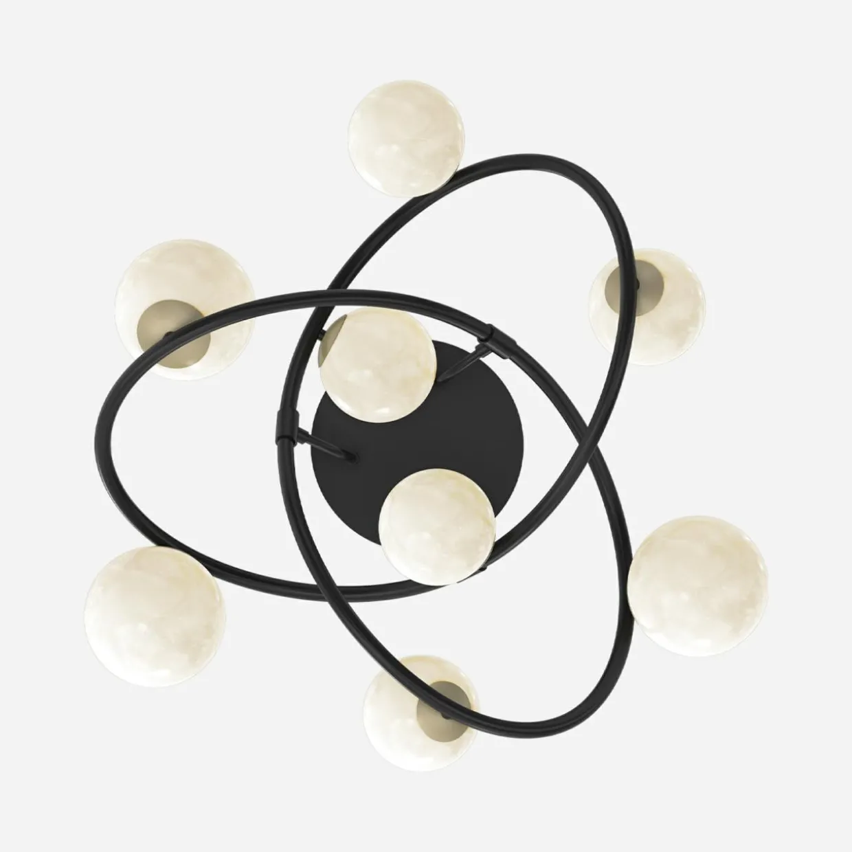 Jej czarna oprawa o kształcie wstęgi Möbiusa została upiększona aż 8 kulistymi kloszami o wykończeniu w perłowej bieli i matowego złota.